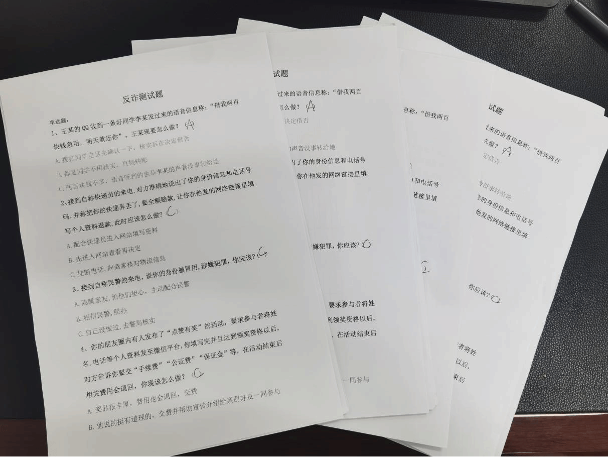 9月12日,学院组织2023级全体新生开展反诈知识测试,并以宿舍为单位签订了反诈倡议书,加强宣传教育力度。
