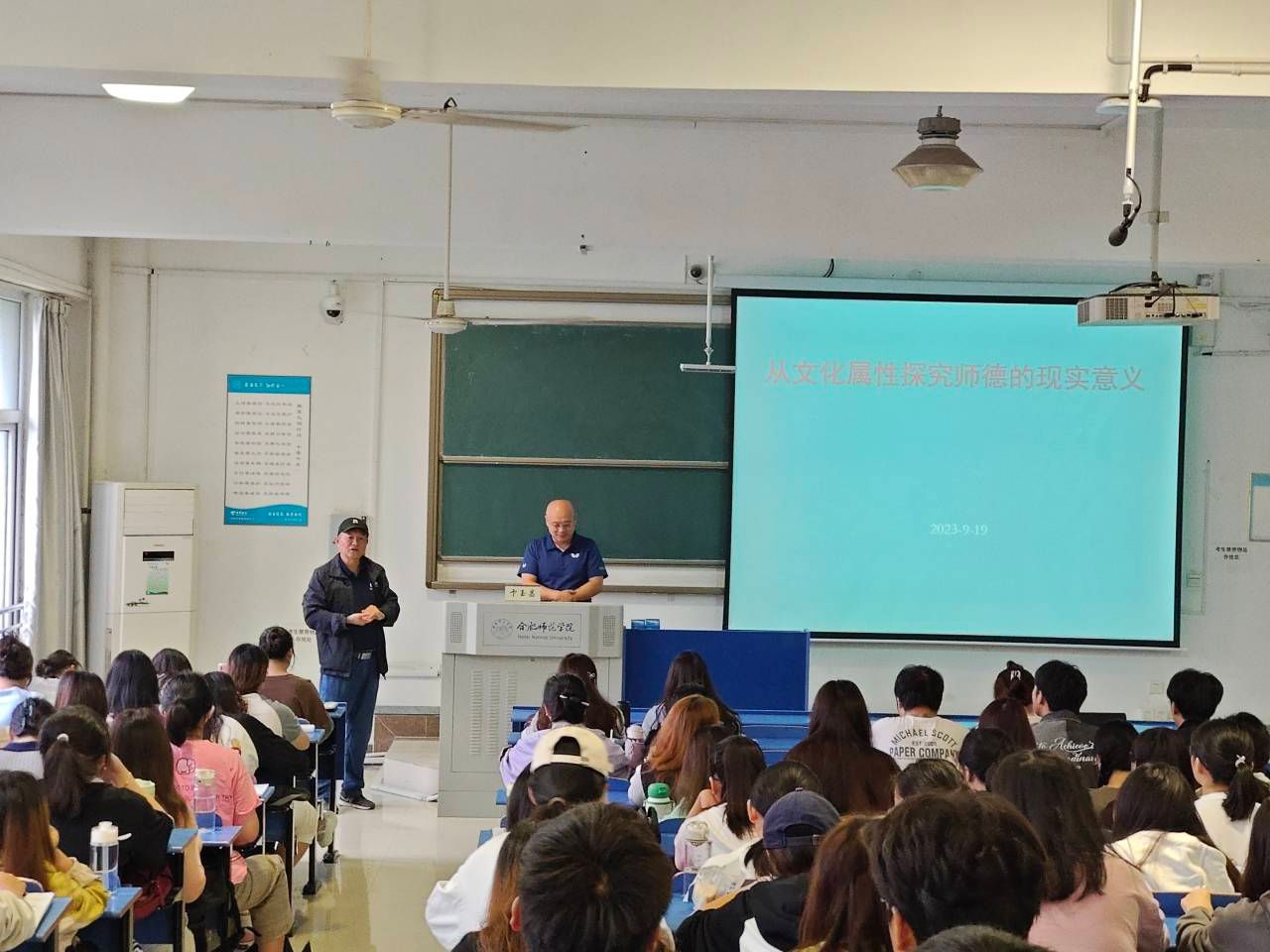卞玉昌结合自身多年从教经历,分享了他对“师德”的独特见解,从政策解读、立德树人、“德”的由来分析和诸子百家道德思想等四个方面对“师德”进行了阐述。