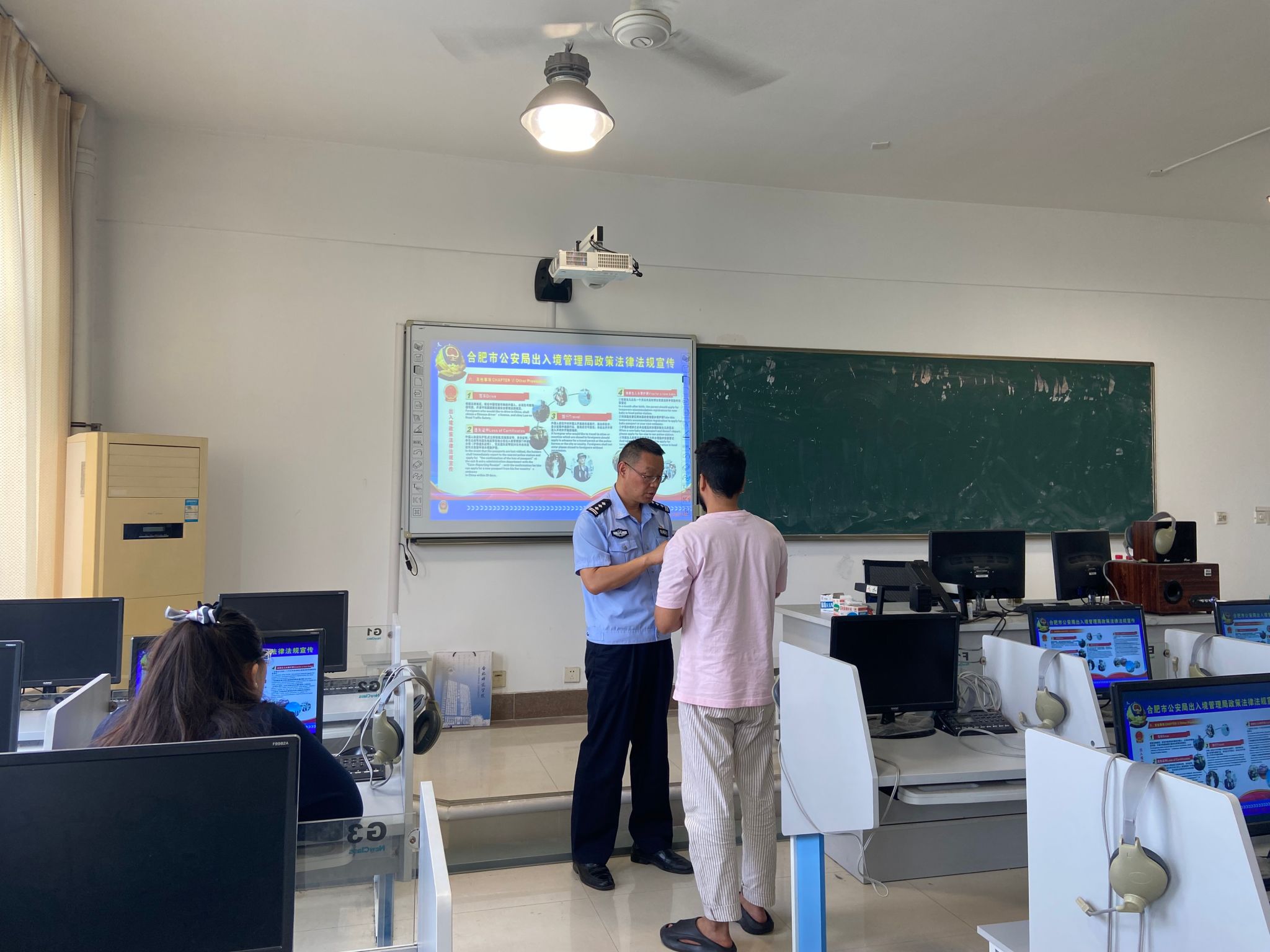 9月27日,国际教育学院邀请了合肥市公安局经开分局的警官一行3人,为留学生新生开展普法教育、安全教育讲座。通过警官们专业细致的讲解及耐心的解答,留学生详细了解了出境、入境、住宿登记、居留、就业、宗教政策等方面的出入境法律法规及在华学习注意事项。