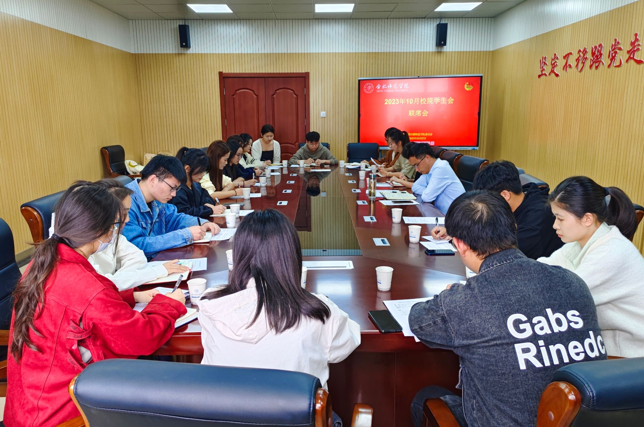 10月27日中午,2023年10月校院学生会联席会议在锦绣校区共青之家召开,院团委副书记何磊,院团委组织建设部魏晓倩、院学生会主席团成员及各二级学院学生会秋季执行主席参加会议。