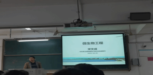 中国科学院合肥物质科学研究院的宋文成副研究员承担《微生物工程》一课。宋文成从环境污染角度出发,向大家介绍了当前利用微生物菌体作为吸附剂,对放射性核素进行吸附,进而消除环境中放射性物质污染的研究现状,从而启发同学们认识微生物在工业生产及人民生活中的重要意义。