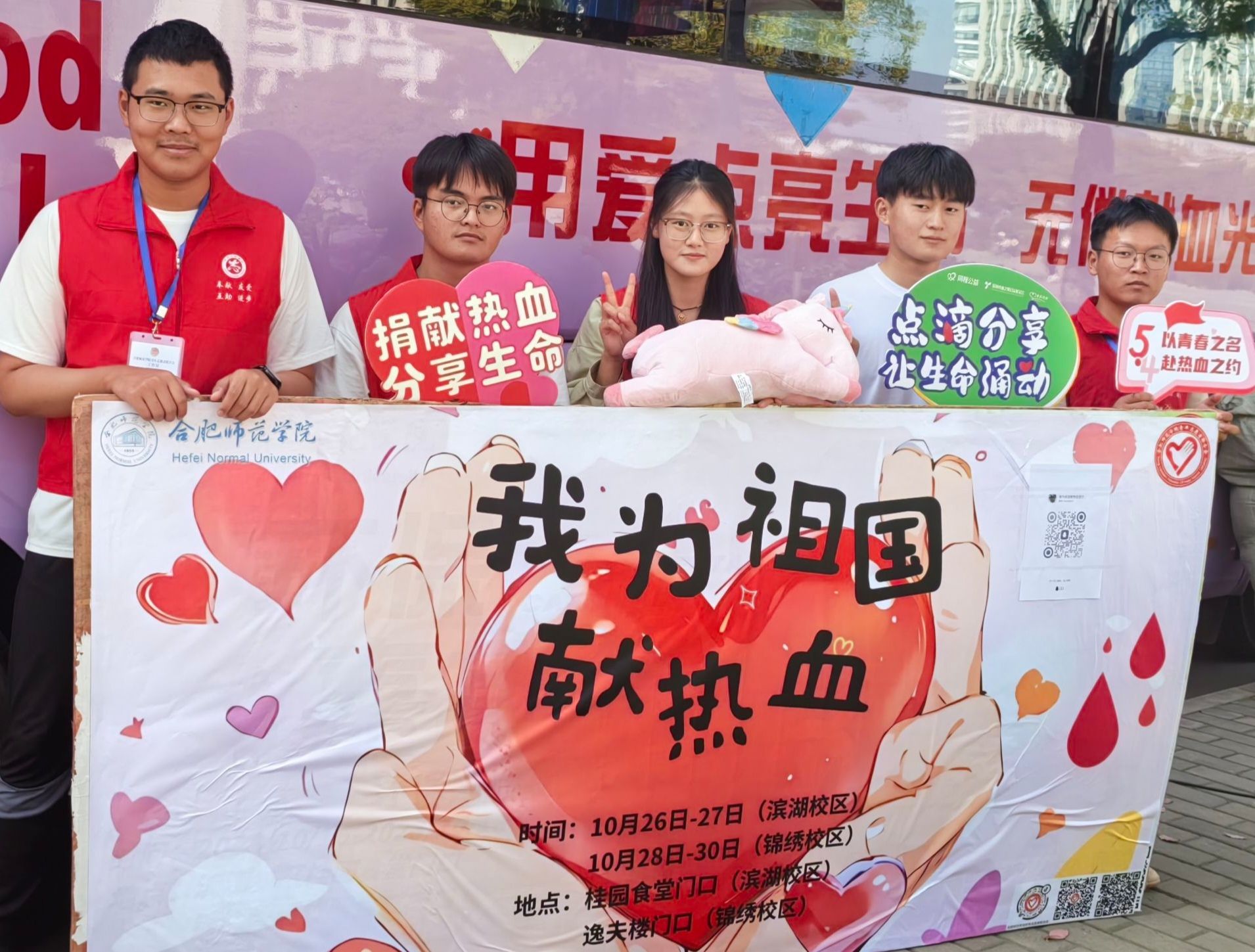 10月26日至30日,学院青年志愿者联合会(以下简称“青志联”)联合安徽省血液中心、合肥市中心血站于滨湖校区桂圆餐厅旁与锦绣校区逸夫楼前广场开展了“我为祖国献热血”无偿献血志愿活动。截止活动结束,我院参与无偿献血活动共495人,累计献血133960毫升。