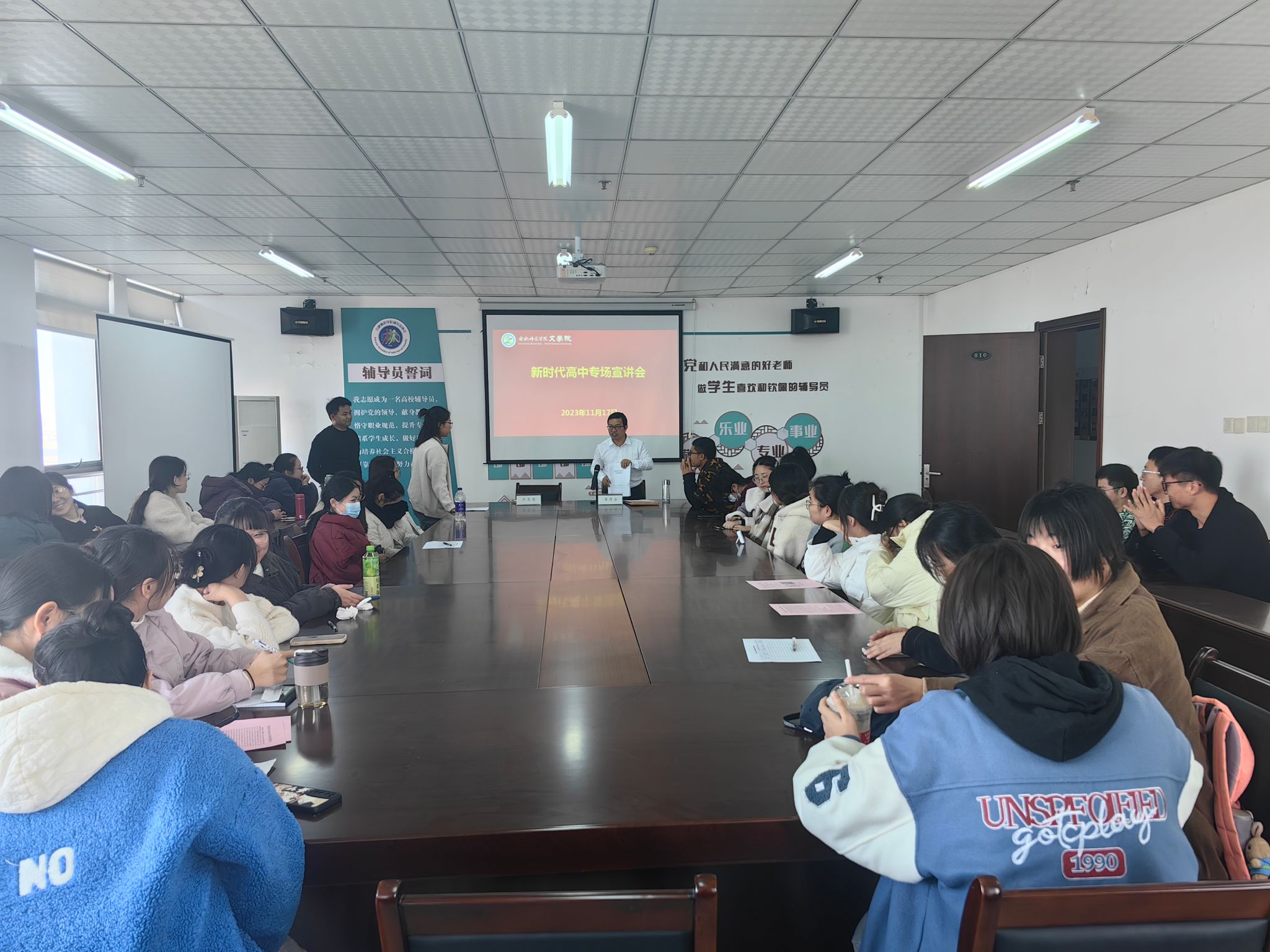 11月17日中午,阳县新时代高中在行知楼810会议室举办专场招聘会。(文学院:李惠恩)