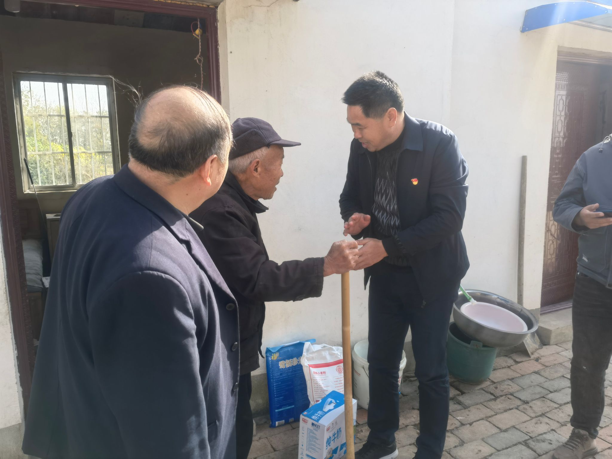 11月23日,机关一党委保卫处支部在支部书记杜文龙的带领下,前往学院定点帮扶单位阜阳市颍东区口孜镇王庄村和洪阳村开展支部活动,看望慰问困难群众,实地走访调研帮扶工作。