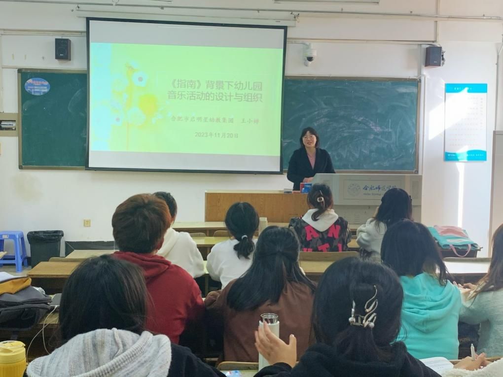 为进一步贯彻《教育部关于加快建设高水平本科教育全面提高人才培养能力的意见》精神,强化学前教育专业人才培养的“产出导向”与“行业需求”,11月20日下午,教育与心理科学学院学前教育系邀请合肥市启明星幼教集团教学总园长王小婵作为“学前儿童音乐教育”课程的行业教师为2021级学前教育专业学生授课。