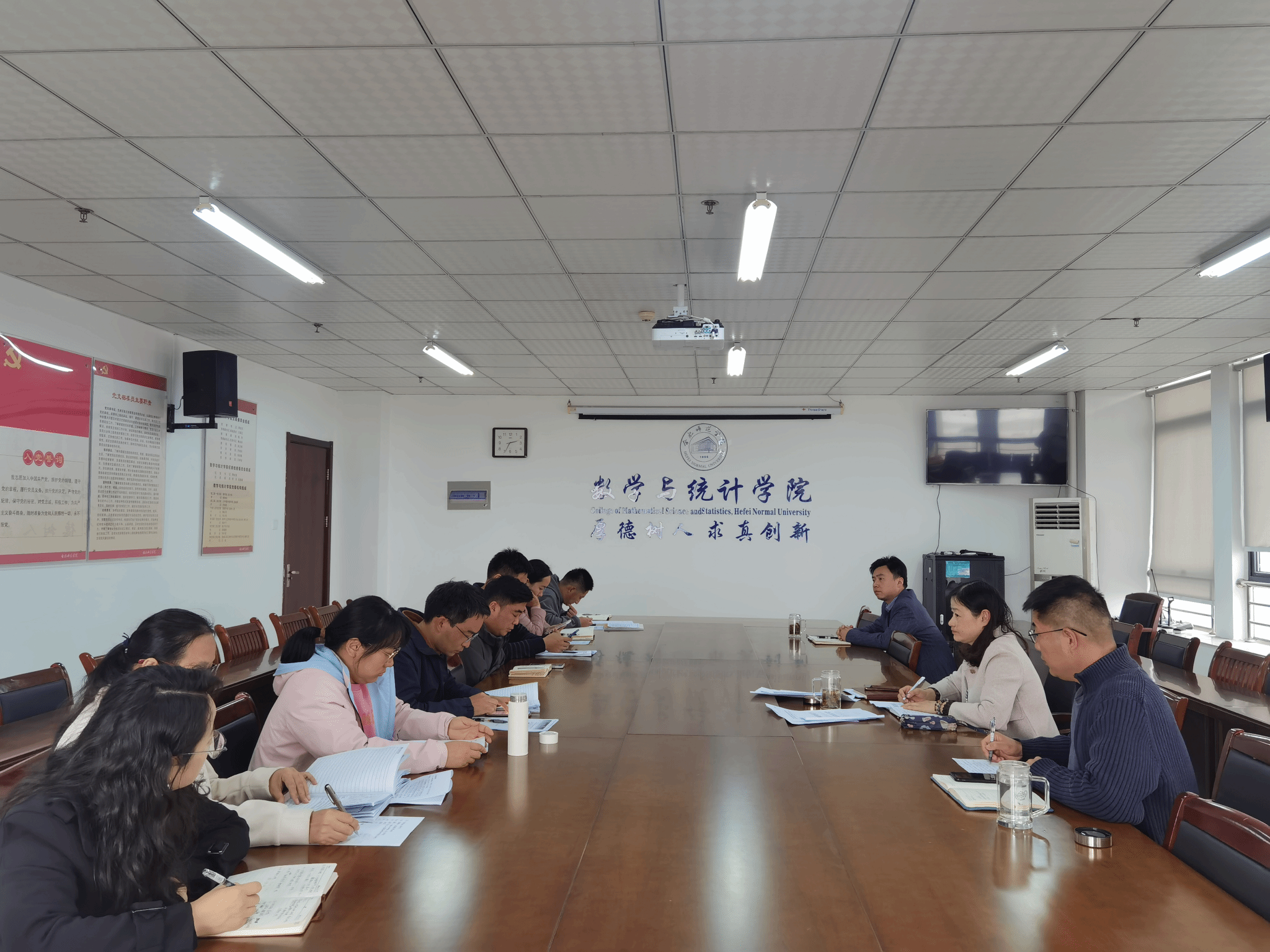 为深入学习贯彻习近平新时代中国特色社会主义思想和党的二十大精神,促进学院党建与事业发展深度融合,把组织力量、组织优势有效转化为发展动力和优势,以高质量党建引领学院高质量发展,11月22日下午,数学与统计学院党委在行知楼1102会议室召开了党支部书记例会,谋划学院近期和2024年党建事业发展工作。会议由学院党委书记穆娟主持,学院二级中心组成员、党支部书记参加例会。