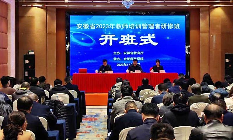 为深入学习贯彻习近平总书记关于教师队伍建设的重要论述,进一步推进我省教师培训体系建设,提升培训管理者业务能力和水平,11月27日至30日,安徽省教育厅在我院成功举办2023年全省教师培训管理者研修班,各市、县(市、区)教育局和教师发展机构以及有关高校负责教师培训管理工作的同志共150余人参加培训,教育厅师资处处长余奕祥在开班式作动员讲话。