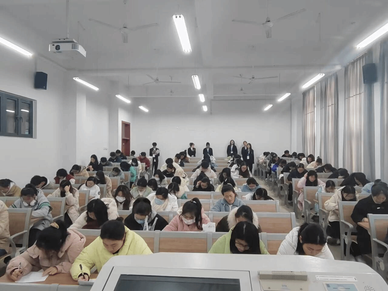 本次活动分为初赛和决赛两个环节。初赛采用闭卷考试形式,围绕习近平新时代中国特色社会主义思想、党的二十大精神和中国共产党的历史等内容,全面考察选手理论知识的掌握情况。来自各二级学院不同专业的近百名选手奋笔疾书,认真作答,“比学赶超”氛围浓厚。经过选拔,共有18名选手进入决赛。