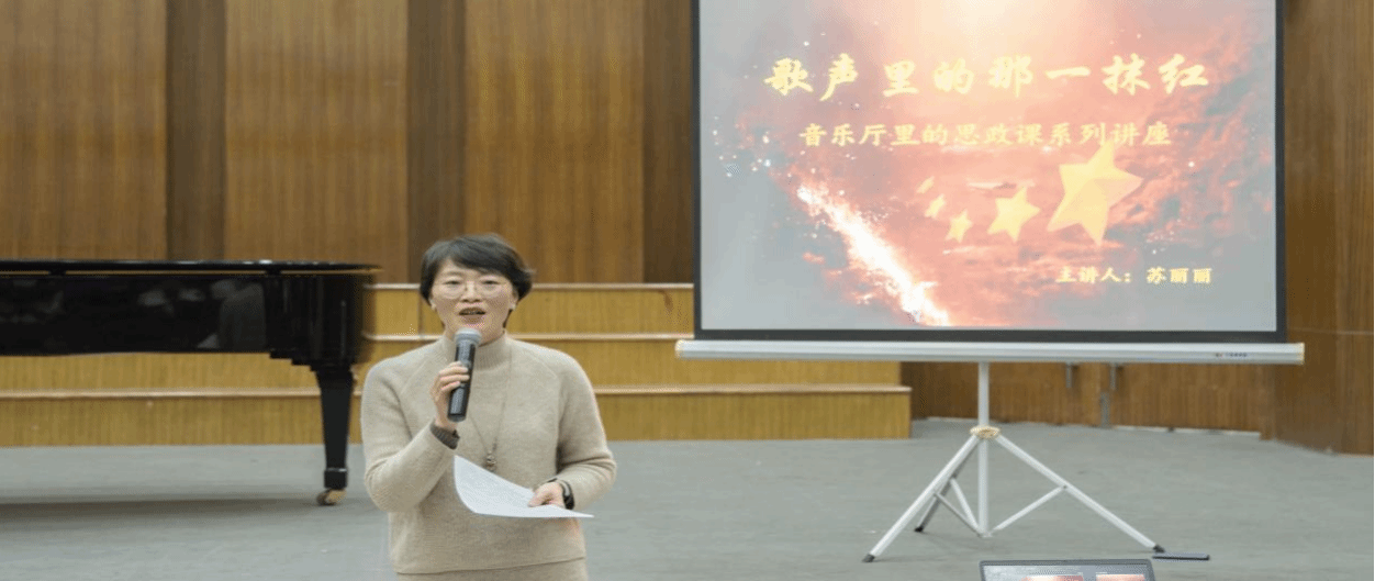 12月13日,省级质量工程项目《声乐教学论》线上线下混合式课程教研项目主持人、音乐学院副教授苏丽丽在音乐厅开展课程思政系列活动,活动采取主题讲座、主题音乐会相结合方式进行。音乐学院实践实训中心主任陆伟副教授主持了本次活动,来自音乐学院及其他学院的近300名本科生参与了此次活动。