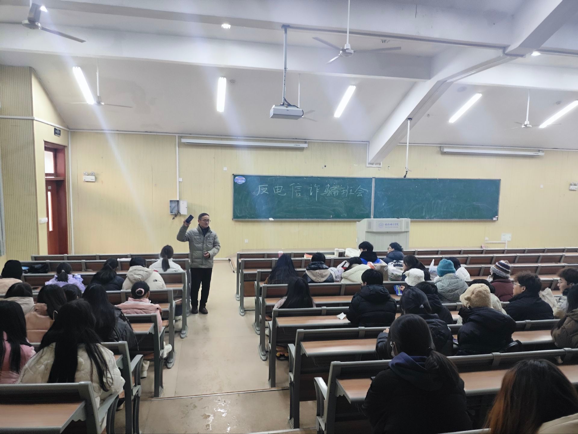 辅导员曹国志在班会上指出,各类新型诈骗手段层出不穷,在校大学生由于社会经验较为薄弱,目前也成为了不法分子电诈攻击的主要对象之一“大学是一个崭新的舞台,要实现自我价值,报效新时代的前提是保护好自己的人身财产安全”。