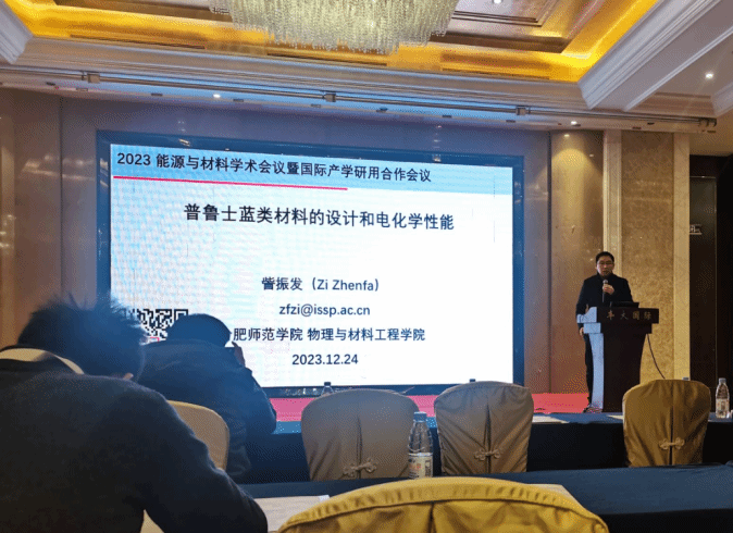 大会基于“双碳”目标引领下,储能产业逐步成长为明星产业的背景下,以“能源与材料化学”为主题。大会上,来自世界及全国高校和产业能源与材料化学领域的专家学者介绍了先进能源储能材料、储能器件、材料化学等方面的最新研究成果。訾振发教授作为第五分会场主持人主持了“钠离子电池”的学术报告,同时,訾振发教授在会上就《普鲁士蓝类材料的设计和电化学性能》主题做了详细的汇报。我院余海博士在大会的第七分会场就《低温策略下一次合成具有增强的光电化学性能和光催化活性的N/C/S-TiO2》主题展开报告。其他参会人员结合自己的研究方向与国内外同行进行了广泛交流和探讨。同时我院也将学院最新的学术成果以展报形式呈现在大会的第三分会场,现场引来不少同行学者的观摩,效果良好。