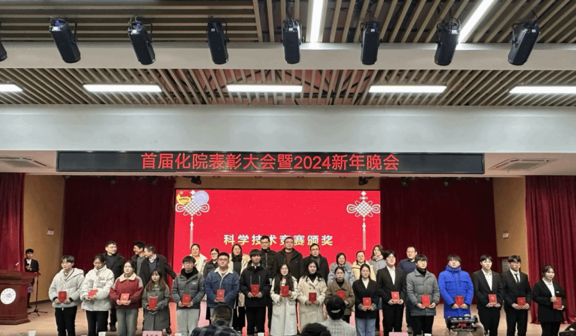 为进一步将美育融入落实立德树人根本任务全过程,促进青年大学生德智体美劳全面发展,12月28日,化学与制药工程学院举办首届学生表彰大会暨2024新年晚会。院党委书记李红、院长朱金苗、副院长董雄辎及专业教师、辅导员参加晚会现场,与全体学生共聚一堂,共同迎接新年。