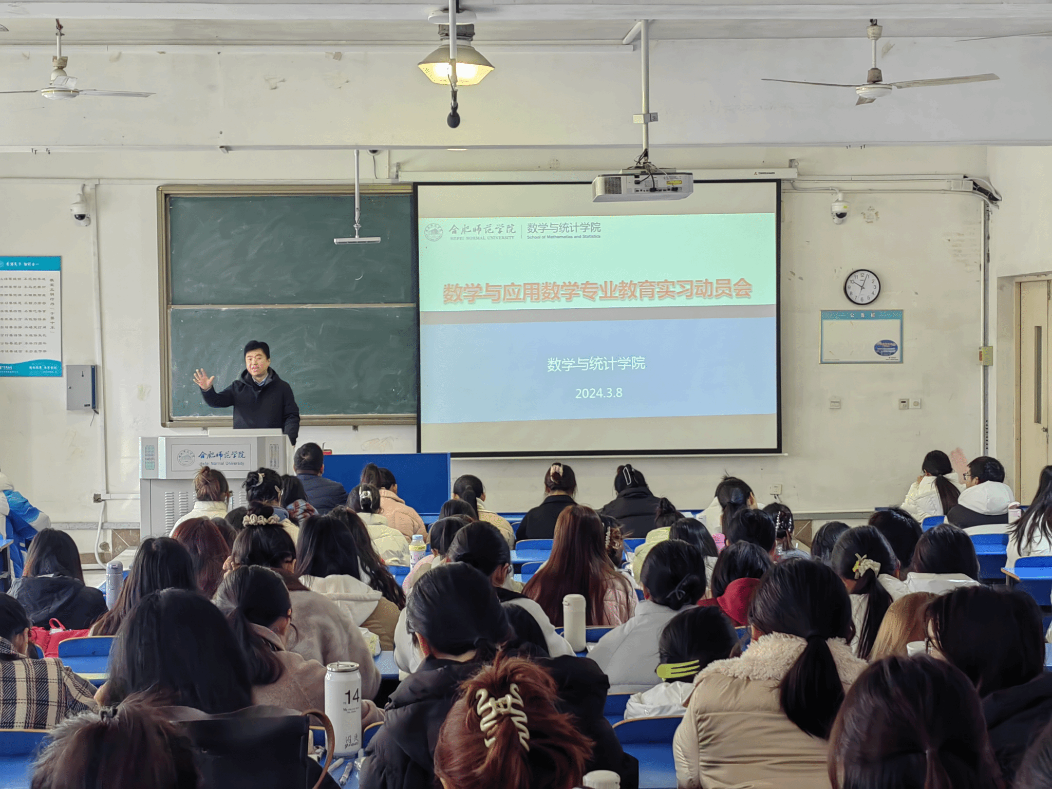 3月8日上午,数学与统计学院在逸夫楼A101教室召开2021级数学与应用数学专业教育实习动员大会。学院党委副书记陶金昌、副院长黄浩,2021级数学与应用数学师范专业全体学生参加本次动员会。会议由辅导员曾飞主持。