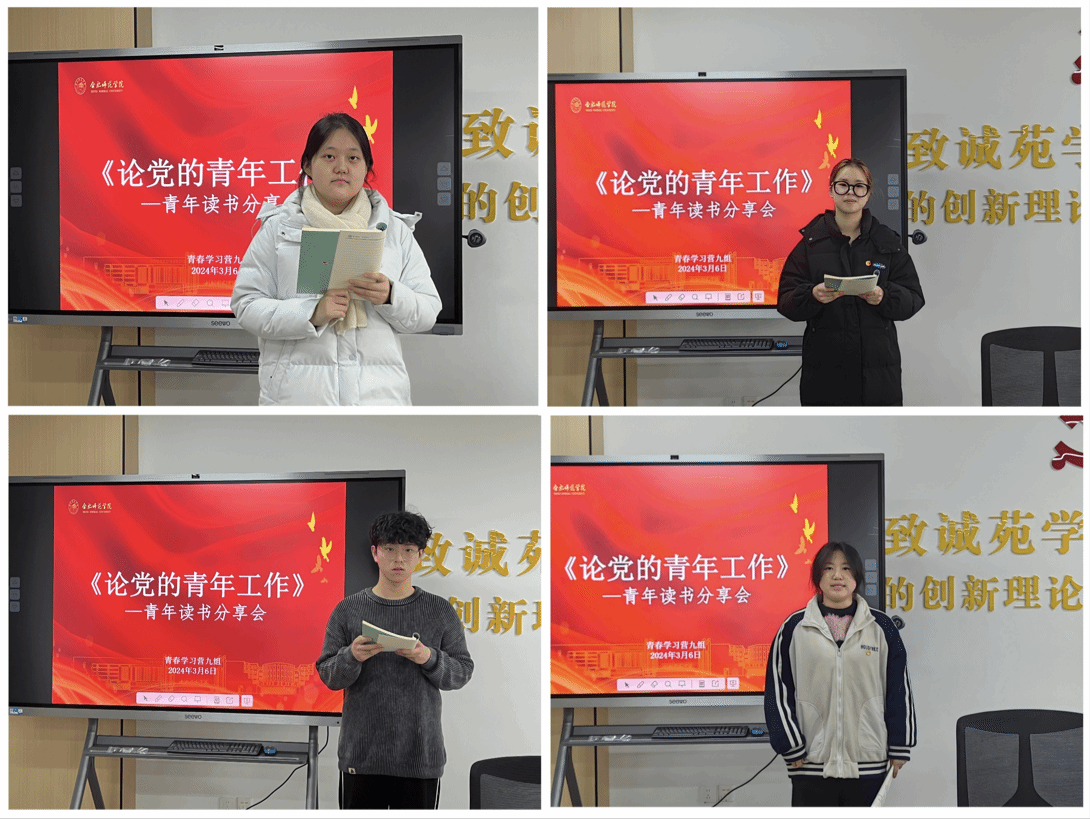 为深入学习贯彻习近平新时代中国特色社会主义思想和党的二十大精神,激励广大青年坚定道路自信、理论自信、制度自信、文化自信,做到以读促思、以读促行,第四期大学生“青春学习营”的成员们在寒假期间认真阅读学习了《论党的青年工作》一书。近期,青春学习营第九组在“一站式'学生社区举行了关于《论党的青年工作》读书分享会活动。