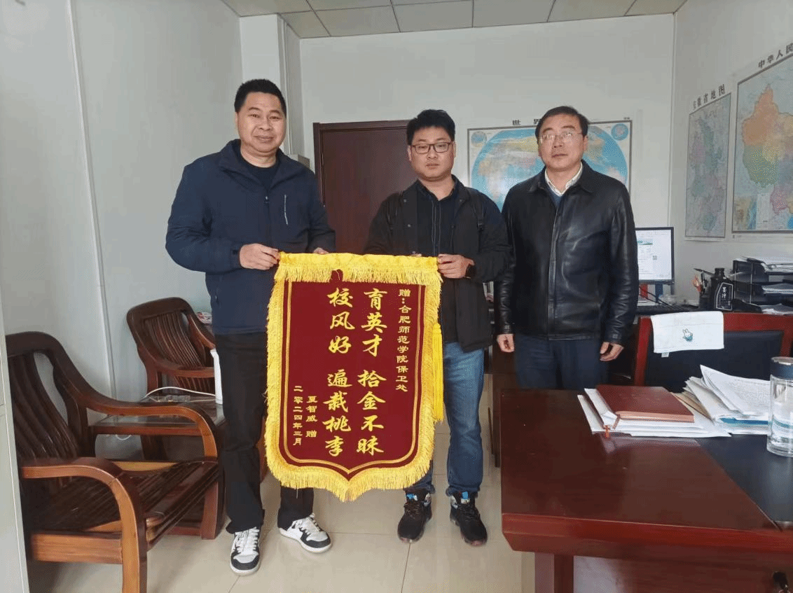 为表示对两位同学和保卫处工作人员的感谢,失主坚持送上锦旗和感谢信表达由衷的感谢。