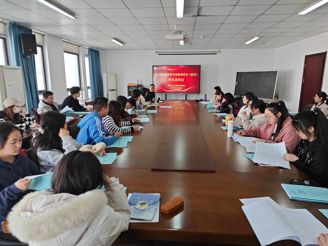 为进一步加强学生专业学习,提升学生实践能力,3月20日下午,教育与心理科学学院学前教育系在锦绣校区行知楼710会议室召开教育实习(研习)动员会。教育与心理科学学院副院长胡连峰、学前教育系主任孙延永出席会议,2021级学前教育专业全体学生参加会议。会议由教育与心理科学学院学前教育系副主任蒋晨晓主持。