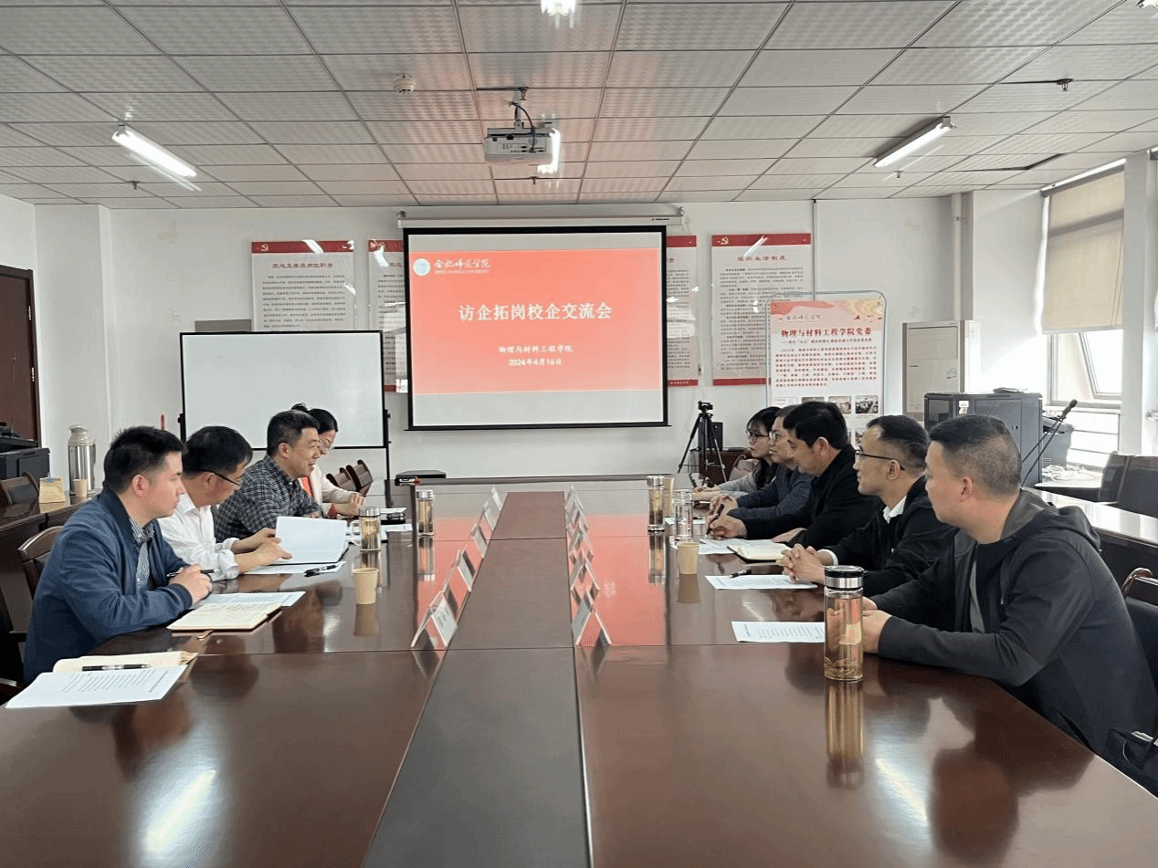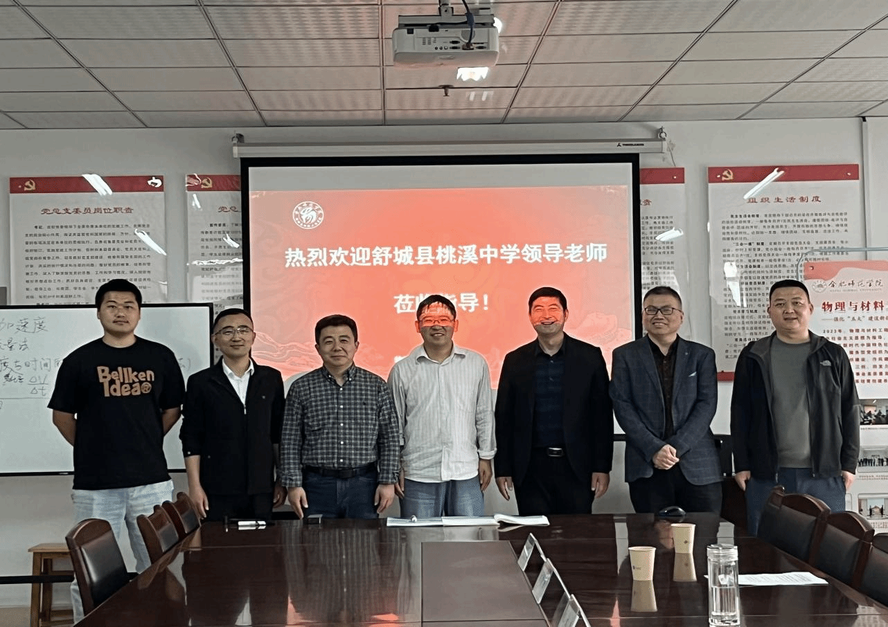 为加强物理与材料工程学院与地方学校的沟通交流,深入推进2024届师范毕业生就业实习工作,提高教育实习质量,4月16日下午,物理与材料工程学院与来访的舒城县桃溪中学开展交流座谈会。舒城县桃溪中学校长程文兵、副校长王林松等一行五人,物理与材料工程学院院长訾振发、物理系主任沈永才、副主任陶蕊、毕业班辅导员张玲俐以及部分毕业生代表参与了会议。会议由党委副书记吴震主持。