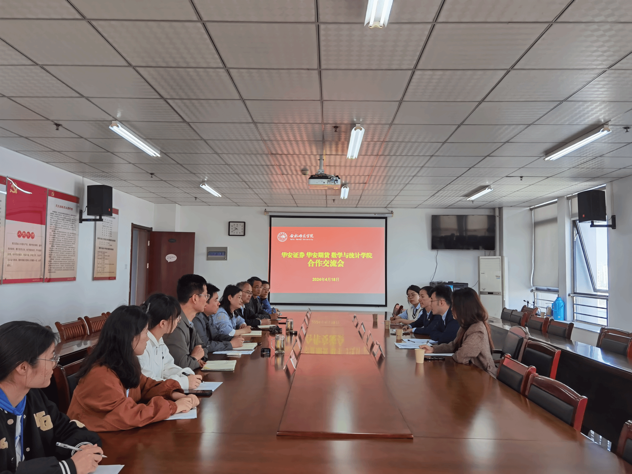 为进一步加大校企合作力度,实现校企优势互补、资源共享,4月18日上午,华安证券互联网投教基地负责人王京辉、华安期货营销服务管理总部经理王亚玲一行到学院开展校企合作洽谈。数学与统计学院党委书记穆娟、院长杨刘、副院长黄浩以及相关系主任、专业负责人、毕业班辅导员、学生代表参加座谈会,座谈会由穆娟主持。