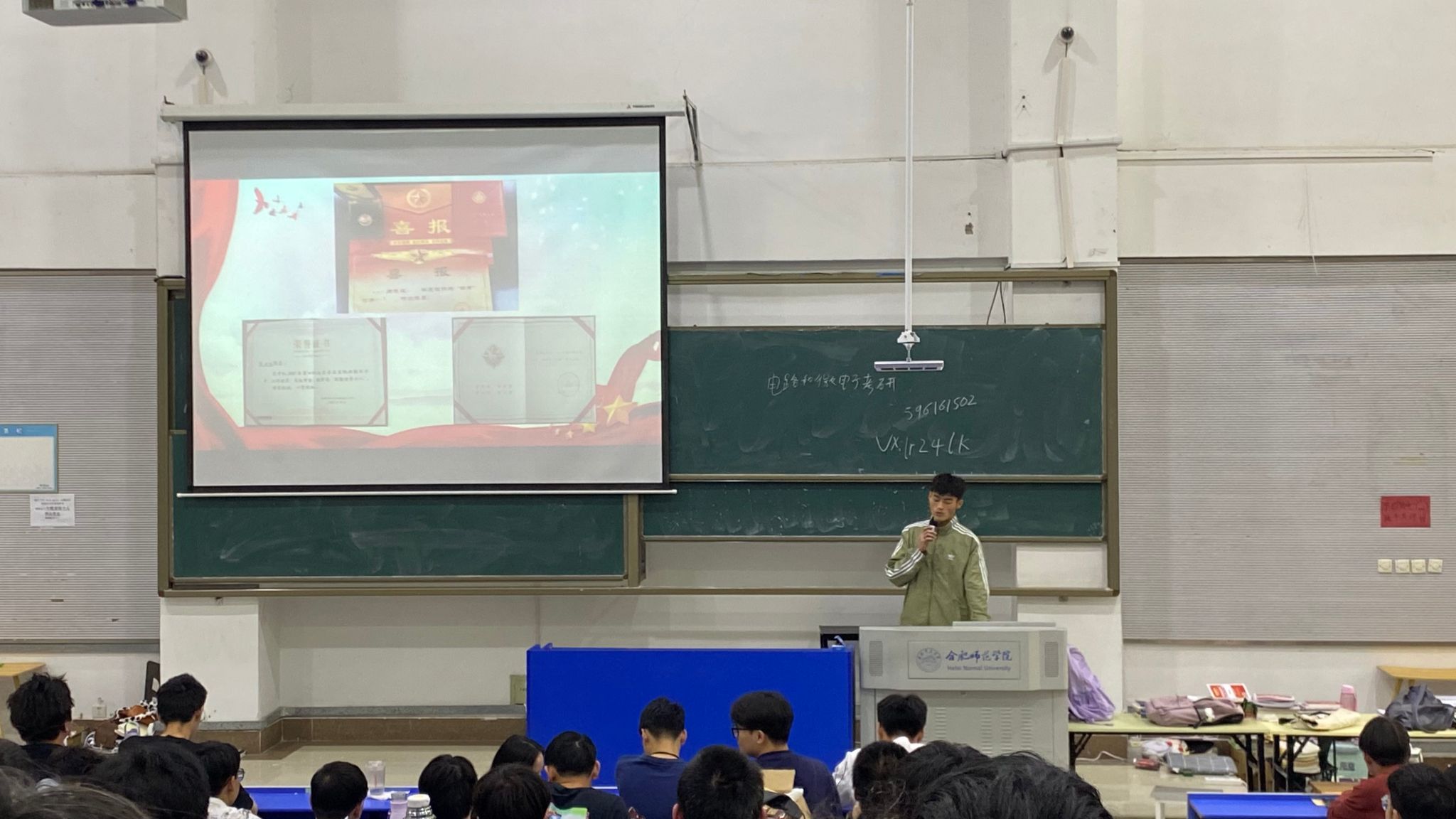宣讲会上,退伍士兵赵世龙同学应邀分享,他以照片、视频等形式分享了自己的军旅生活,回顾了应征入伍的初衷,并重点讲述了在军营生活的热血故事。同时就同学们普遍关心关注的入伍准备、如何快速适应军营生活等问题进行探讨。与会老师还就应征条件、报名时间、体格检查、政治考核等方面向同学们进行了详细讲解,并鼓励同学们投身国防、响应国家号召,携笔从戎,追梦军旅。整场活动组织紧凑、气氛热烈。