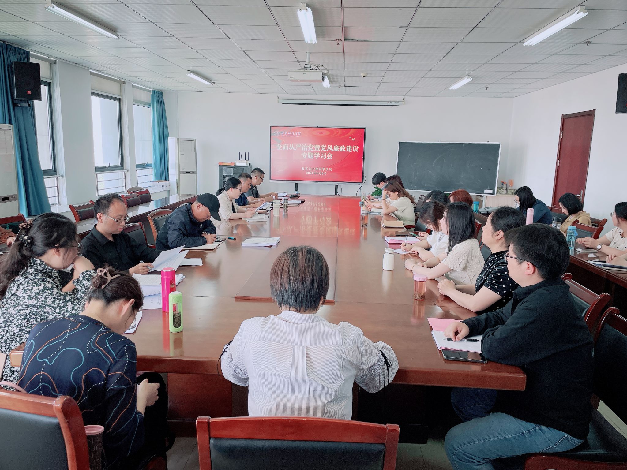 为持续深入推进党纪学习教育,推动全面从严治党向纵深发展,进一步强化纪律意识,筑牢拒腐防变思维防线,提高全体教职工廉洁自律意识,5月8日下午,教育与心理科学学院在710会议室召开2024年全面从严治党工作会议暨党风廉政建设专题学习会议。
