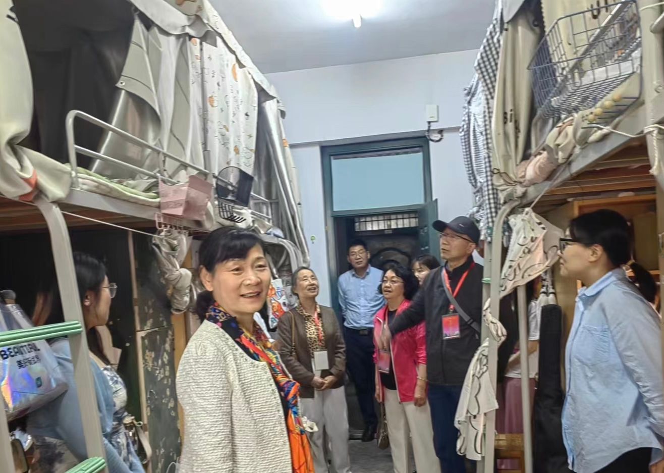 5月8日,院关工委副主任杨晓民、张华、胡颖以及离退休工作处处长郑支农等一行4人,在数学与统计学院副书记陶金昌和辅导员曾飞的陪同下,亲切看望锦绣校区大三学生们,并走访了男女生寝室,将关工委的温暖和关怀送给了学生们。