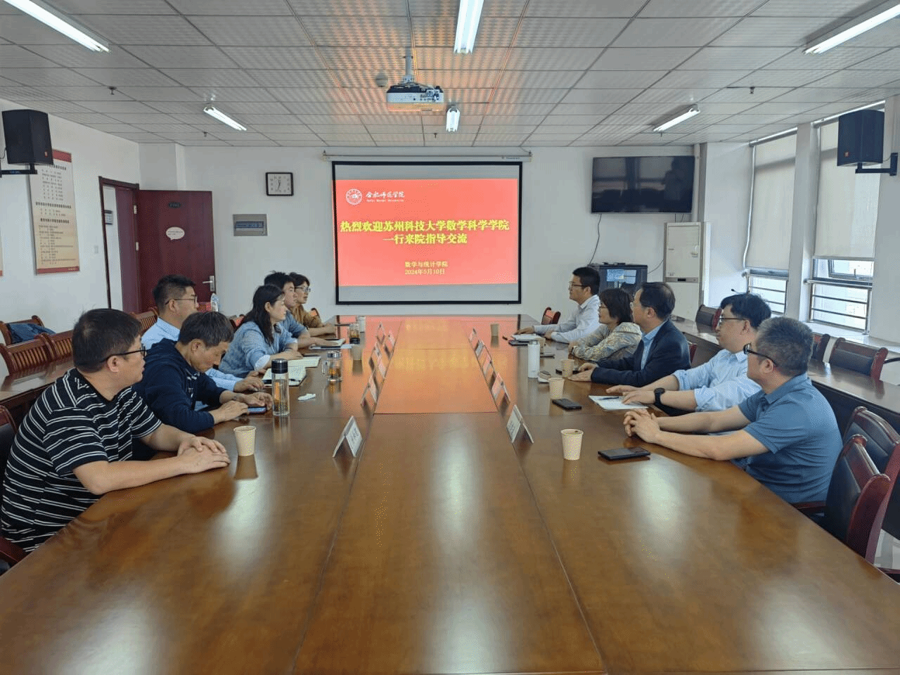 5月10日上午,苏州科技大学数学科学学院院长黄志刚,副院长陈洋、孙桂荣一行5人到数学与统计学院调研交流。学院党委书记穆娟,副书记陶金昌,副院长黄浩,教育硕士点学科教学(数学)方向负责人沈南山教授以及相关基层教学组织负责人参加了交流会。