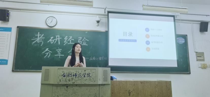 为进一步加强学风建设,充分发挥优秀学生的示范引领作用,帮助学生明确考研目标、掌握考研技巧、提升考研成功率, 5月8日晚,教育与心理科学学院心理系举办“研途有你”考研经验分享会,2021级应用心理学班全体学生参加会议。