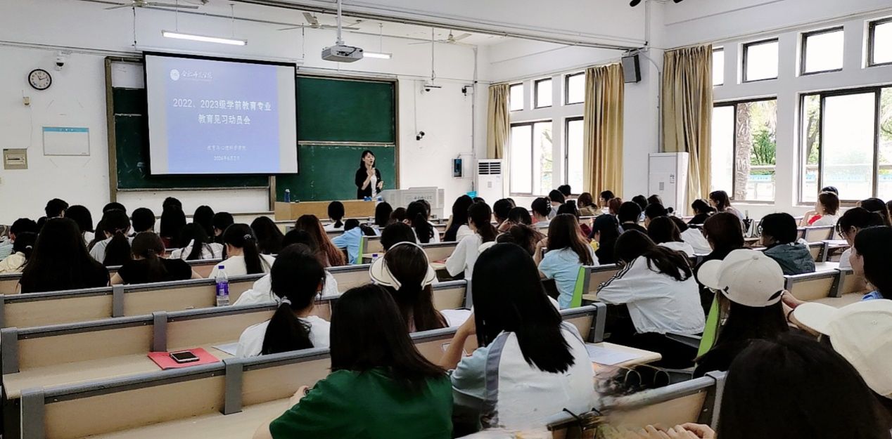 为提升学生专业实践能力,帮助学生科学认识教育见习的任务与要求,6月2日下午,教育与心理科学学院学前教育系在锦绣校区博约楼110教室召开2022和2023级学前教育专业教育见习动员会。教育与心理科学学院副院长胡连峰、学前教育系副主任蒋晨晓出席会议,2022、2023级学前教育专业全体学生参加会议。