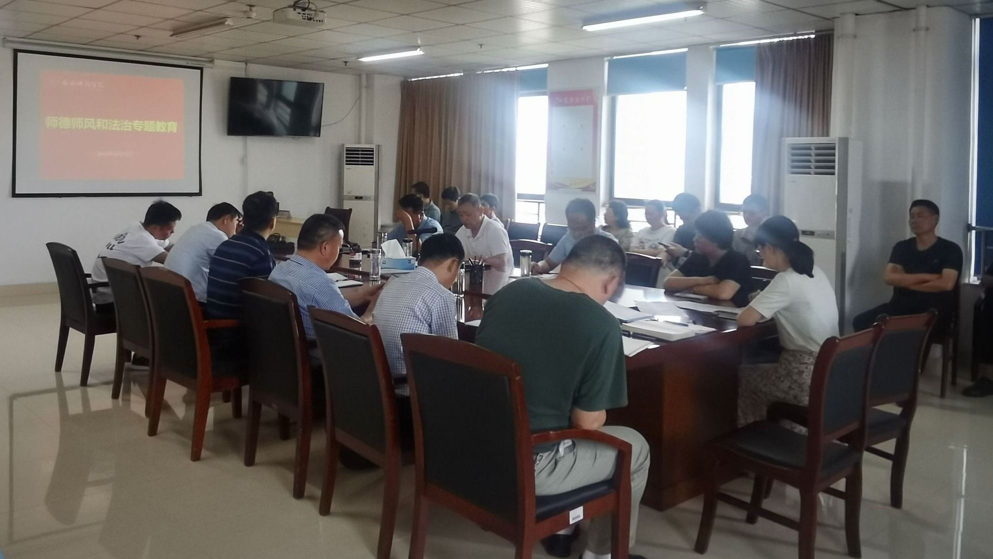 为进一步提升全体教职工思想政治素质和职业道水平,全面夯实师德师风建设基础,6月12日下午,后勤召开全体教职工大会,推进师德师风和法治专题学习教育。会议由党总支书记傅民主持,后勤全体教职工参会。