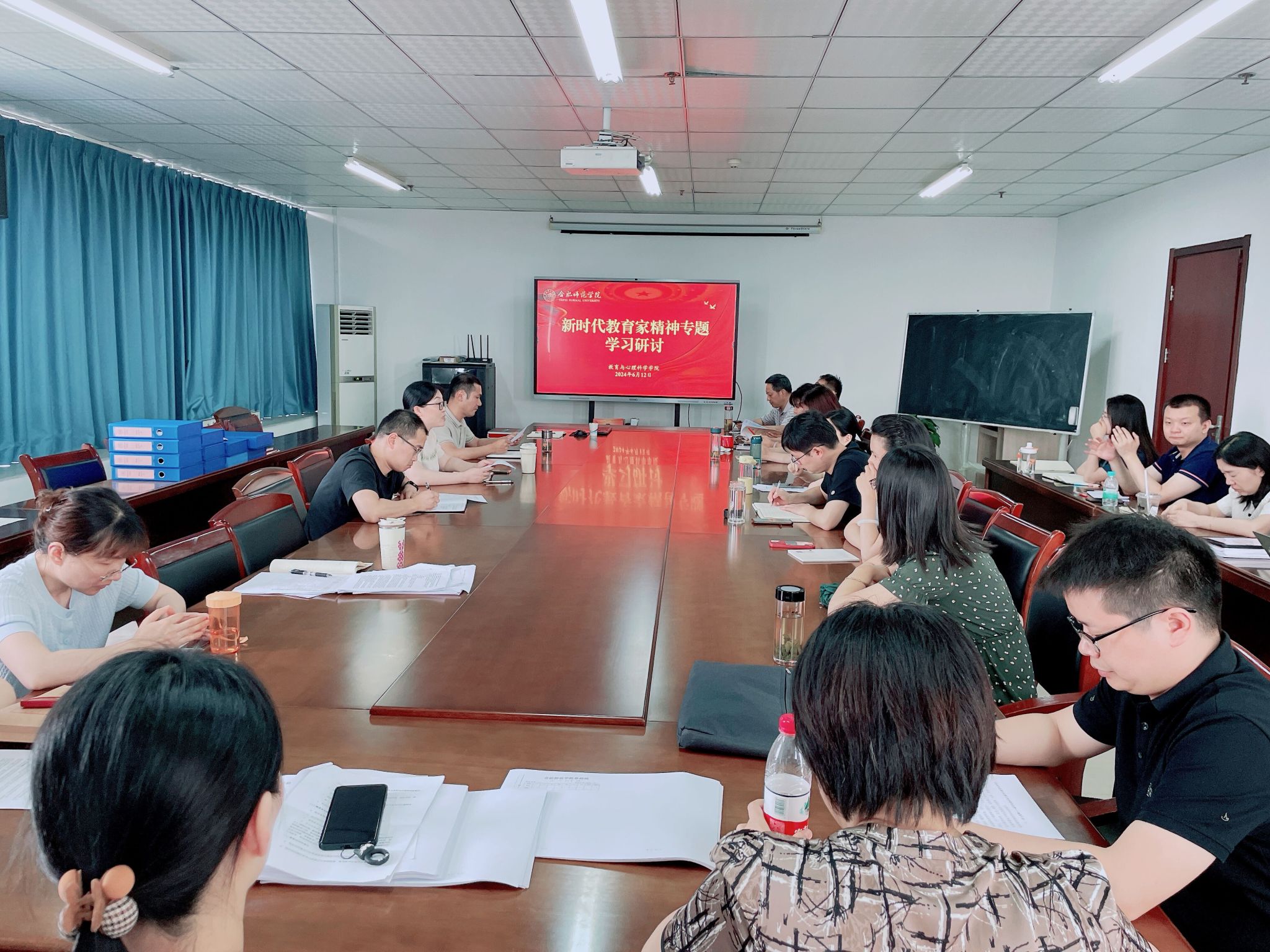 为贯彻落实习近平总书记关于大力弘扬教育家精神的重要指示精神,引导教师深刻领会教育家精神的核心内涵,自觉用以培根铸魂、以文育人、以文化人,6月12日,教育与心理科学学院组织开展教育精神专题学习研讨。会议由学院党委书记董萍主持,全体教职工参加。