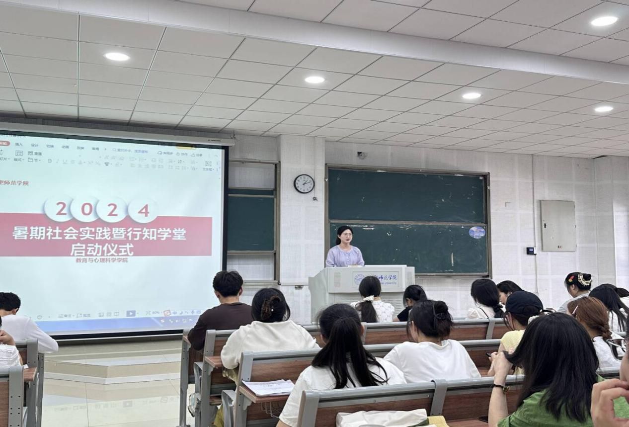 为引导广大青年学子在社会课堂中“受教育、长才干、作贡献”,以青春行动贯彻落实党的二十大精神,6月20日,教育与心理科学学院在滨湖校区博学楼A108教室举行2024年暑期“三下乡”暨“行知学堂”实践活动启动仪式。学院部分指导教师和滨湖校区学生代表参加活动,活动由教育与心理科学学院分团委书记王磊主持。