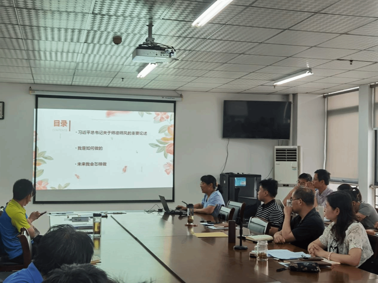 报告围绕“习近平总书记关于师德师风的重要论述”“我是如何做的”“未来我会怎样做”三个部分进行展开。王燕带着大家重温学习了“四有”好老师标准、“四个引路人”的角色定位、“四个相统一”的要求践行、大力弘扬教育家精神等内容,并结合自身工作,分享教书育人的心得感悟。她认为,教师们要树立远大理想,明确职业目标;要不断自我提升,增强专业素养;要加强师德师风建设;要不断反思总结经验教训,持续改进提高教学质量。分享过程中,她结合自身经历,鼓励老师们积极参加各类教育培训、学术研讨会,更新教育观念,拓宽教育视野、提高教学技能。