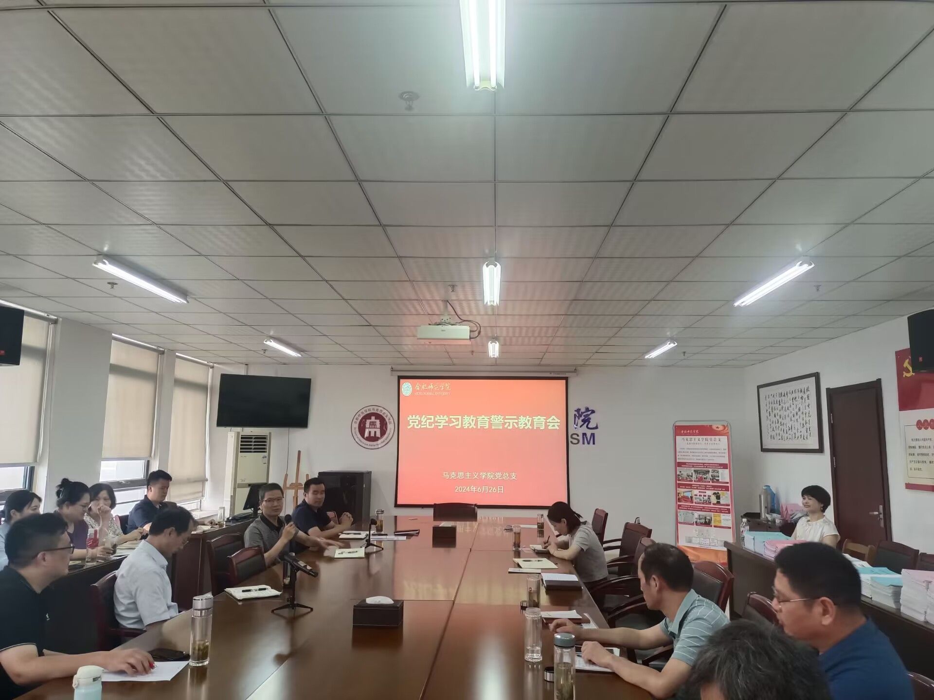 为推动党纪学习教育走深走实,进一步增强党员的纪律意识,深刻汲取典型案例教训,做到知敬畏、存戒惧、守底线,6月26日下午,学院党总支在锦绣校区行知楼1610会议室召开党纪学习教育警示教育大会。学院领导班子成员、党支部书记、教研室主任及全体党员教师参加会议。