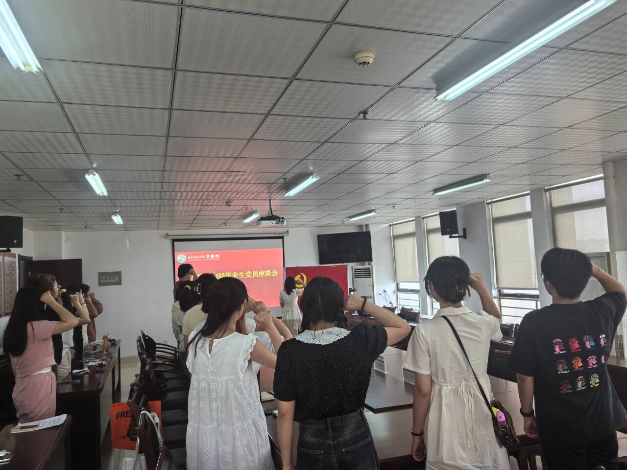 座谈会结束后,与会全体党员重温入党誓词,铭初心、感党恩。(文学院:疏淑进)