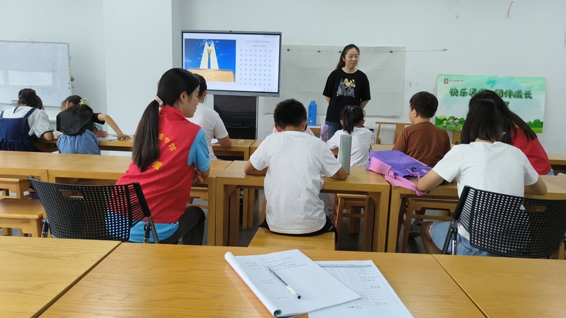 在开班仪式上,包河区图书馆王琪老师代表图书馆对学员们的到来表示热烈欢迎,并详细介绍了2024年“青轻行走”行知学堂第一期“薪火传承 强国有我”夏令营的日程安排。