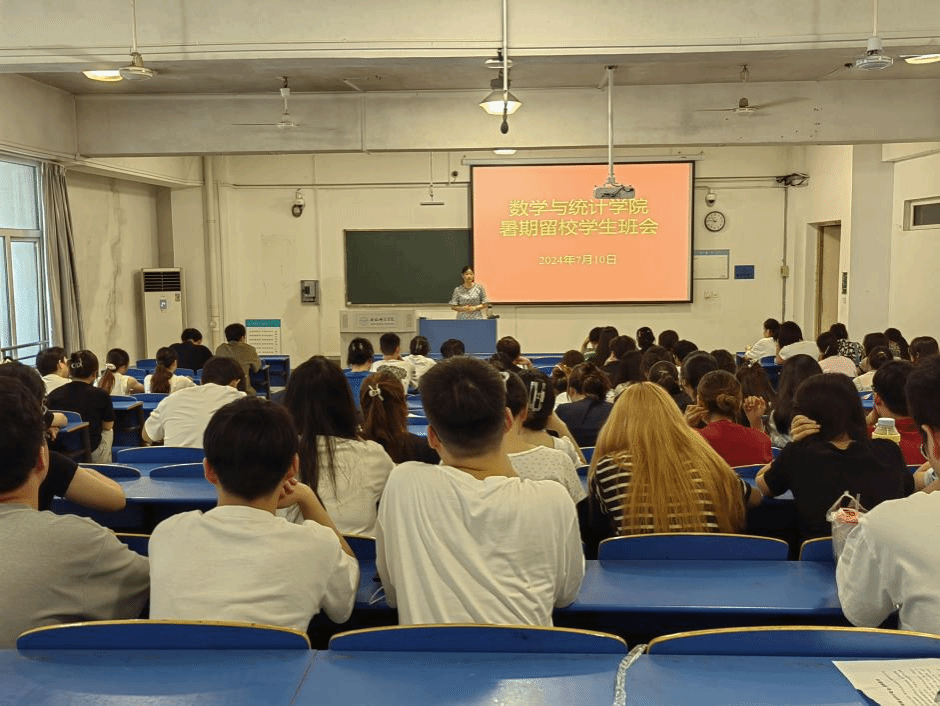 为加强留校学生的教育和管理,做好暑期安全防范工作,7月10日上午,数学与统计学院在逸夫楼A109召开暑期留校学生安全教育主题会议,党委书记穆娟、2021级辅导员曾飞、2021级留校学生参加会议。会议由曾飞主持。