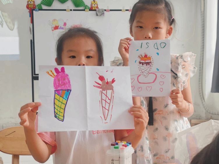 在随后的学堂活动中,小老师们实施的课程内容以生活为教材,以社会为课堂,给孩子们展现丰富的生活实践和兴趣课程,叶冉老师的“翩翩起舞”课,让孩子们随着音乐的节拍舞动,感受韵律带来的快乐;方洁老师的“妙笔生花”课,通过“夏天的味道”带同学们进入到夏日冰淇淋的美妙世界,同学们画的冰淇淋让老师们赞不绝口;张城老师的“楚河汉界”课,让同学们感受到传统文化的美妙和创新思维的魅力。