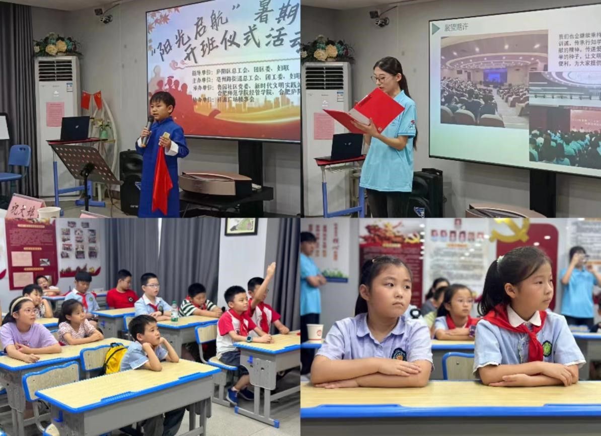7月15日,经济与管理学院鲁园社区“行知学堂”正式开班,鲁园社区街道总工会党委书记、全国劳模代表徐辉、学堂指导老师曹国志,10名小先生、17位小学员及家长代表到场参加。
