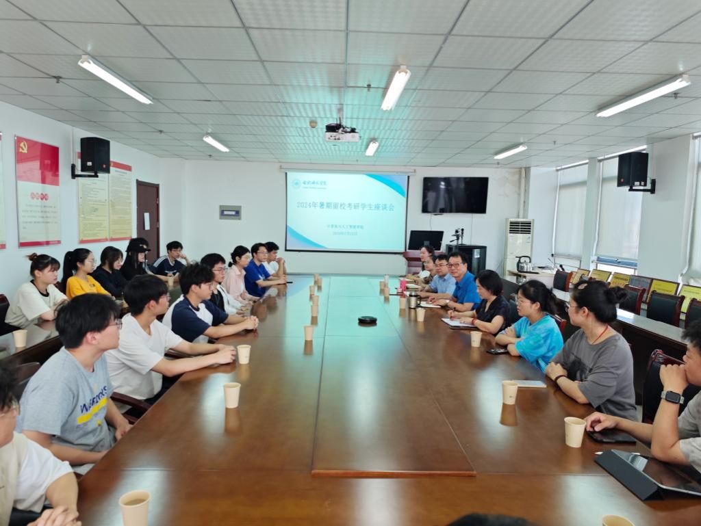 为了解留校考研学生思想动态、学习状况和生活情况,切实做好学生安全管理和服务保障,7月22日,计算机与人工智能学院在行知楼1302召开暑期留校考研学生座谈会,学院党委书记王祥、院长谢飞、党委副书记杨萍、副院长刘路路、2021级辅导员以及留校考研学生代表参加座谈会,会议由党委副书记杨萍主持。