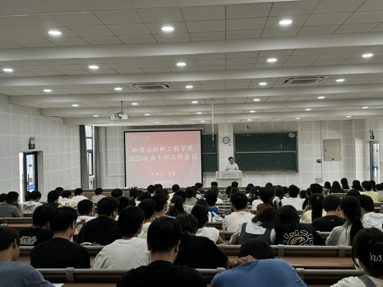 为进一步加强班级和寝室管理工作,提升学生干部与寝室长的工作能力,9月4日下午,物理与材料工程学院在滨湖校区召开2023级学生干部工作会议,会议由学院党委副书记吴震主持,2023级辅导员韩翔、李妍及2023级全体学生干部、寝室长参加会议。