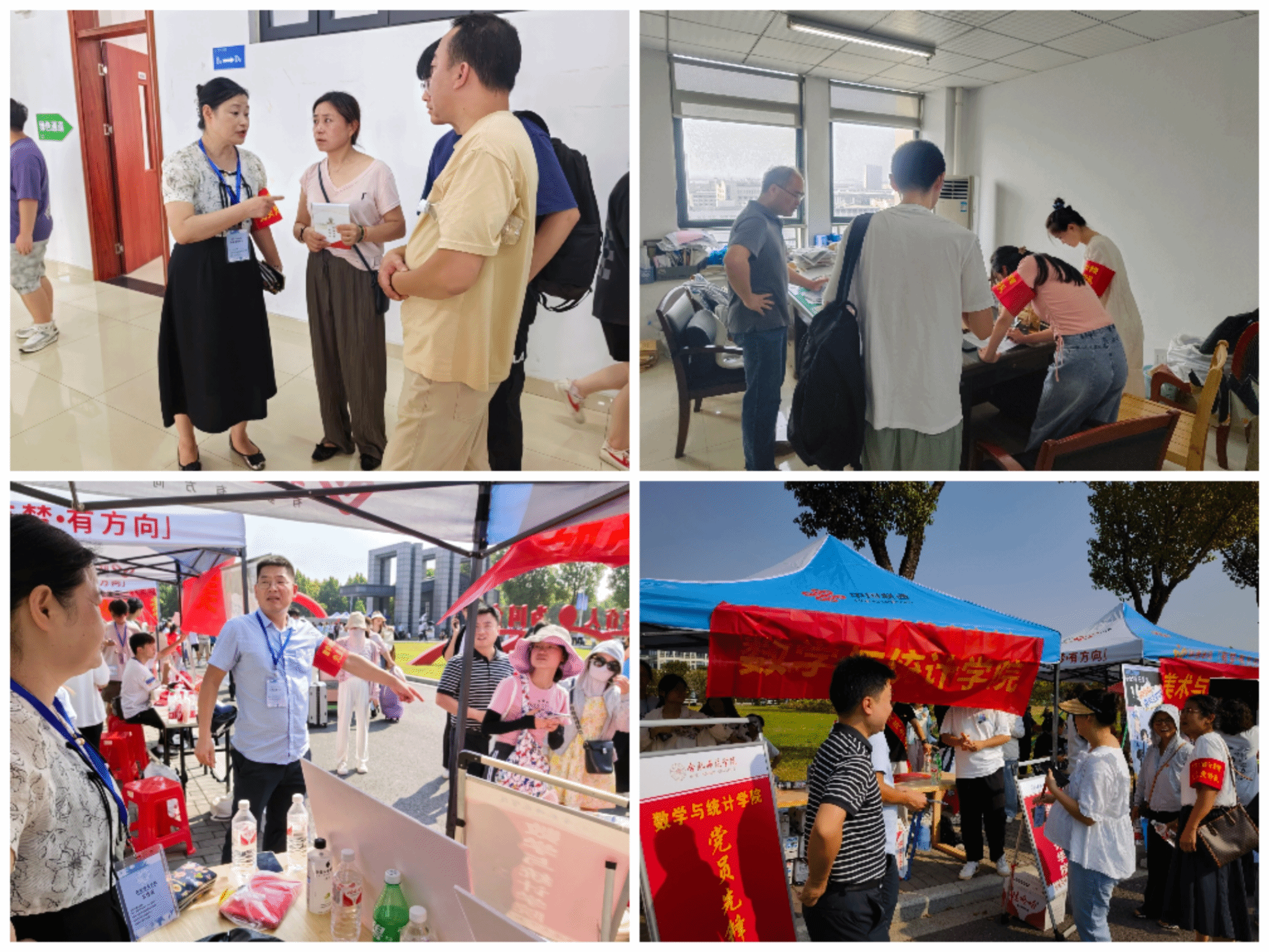 本次迎新活动,学院在锦绣、滨湖两校区组织了150名学生志愿者和17名教师志愿者,帮助新生指引道路、办理报到、搬运行李、解疑答惑。天气炎热,志愿者们均汗流浃背,他们用辛勤的劳动、周到的服务、耐心的解答,接待每一位学生、家长,充分彰显了数学与统计学院团结友爱的氛围。