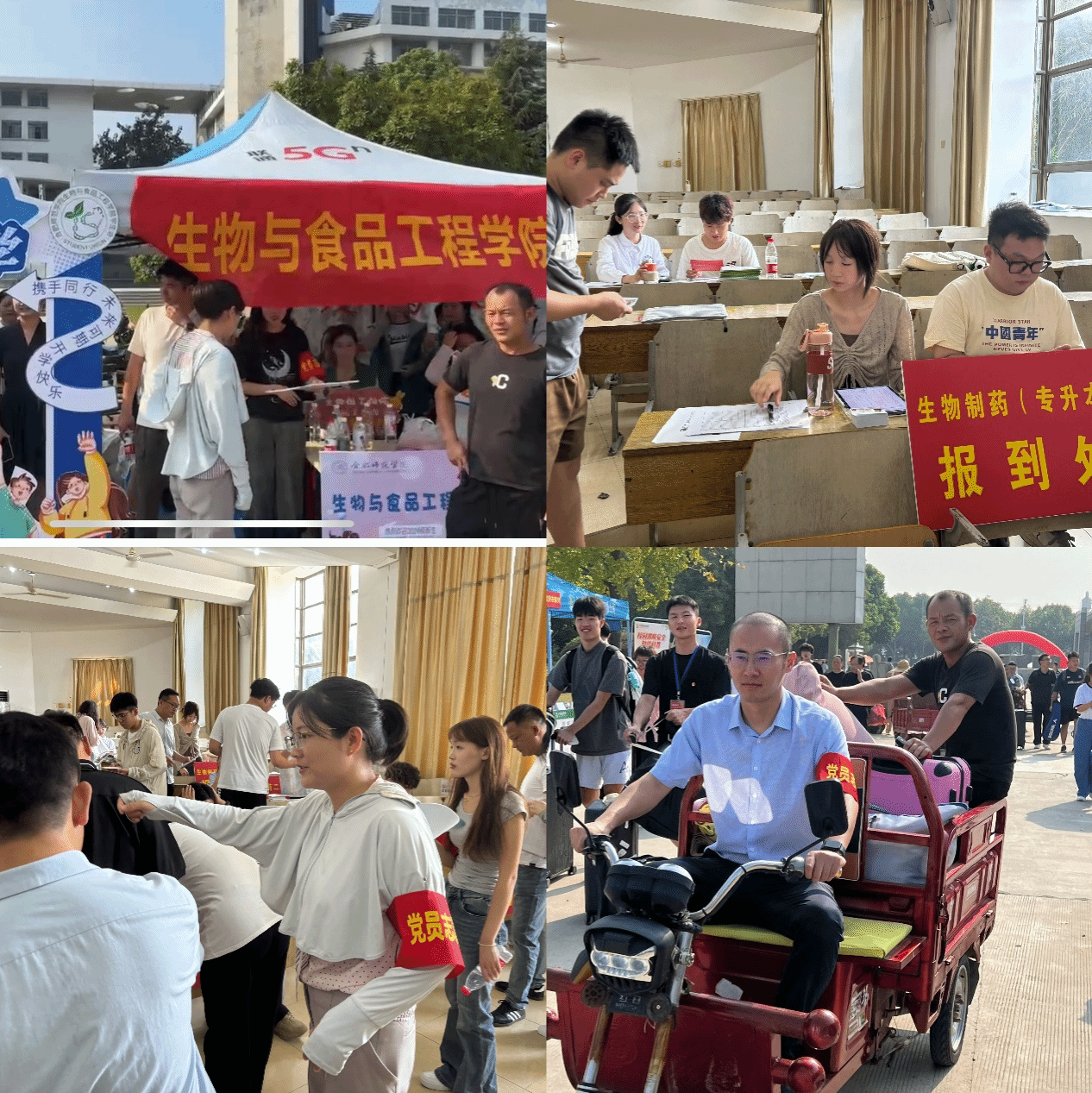9月8日,清晨7点,学院迎新工作全面启动。党员志愿者们早早等候在学校东门接待点,以最饱满的热情迎接新同学的到来。学院党政班子、辅导员坚守一线,与前来报到的新生和家长进行亲切交流。教师党员郭娜和学生党员干部们一起积极参与到迎新志愿服务工作中。他们不辞辛苦地帮助新生们搬运行李,耐心细致地为新生和家长答疑解惑,有条不紊地引导新生办理报到手续,用亲切的态度和温暖的笑容热情服务,他们用自己的实际行动传递着温暖和关爱,充分发挥了党员干部的先锋模范作用和无私奉献精神。