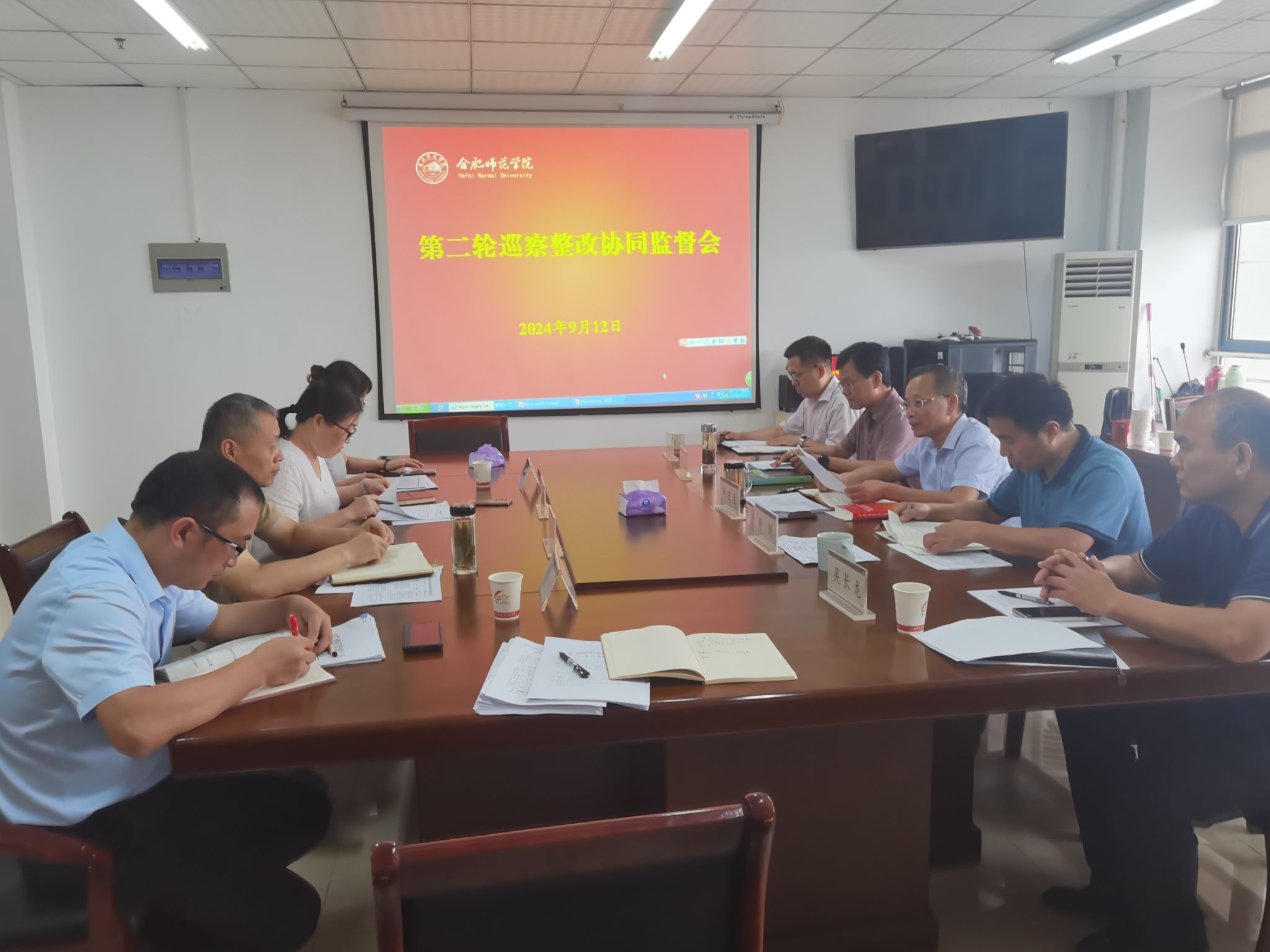为进一步提升整改成效,9月12日下午,党委巡察办在行知楼1802召开第二轮巡察整改协同监督会议,参加会议的有党政办、纪委办、组织部、人事处等巡察工作领导小组成员单位负责人,第二轮被巡察的教育与心理科学学院党委、后勤党总支主要负责人及相关人员,巡察办工作人员。会议由巡察办主任李旺生主持。