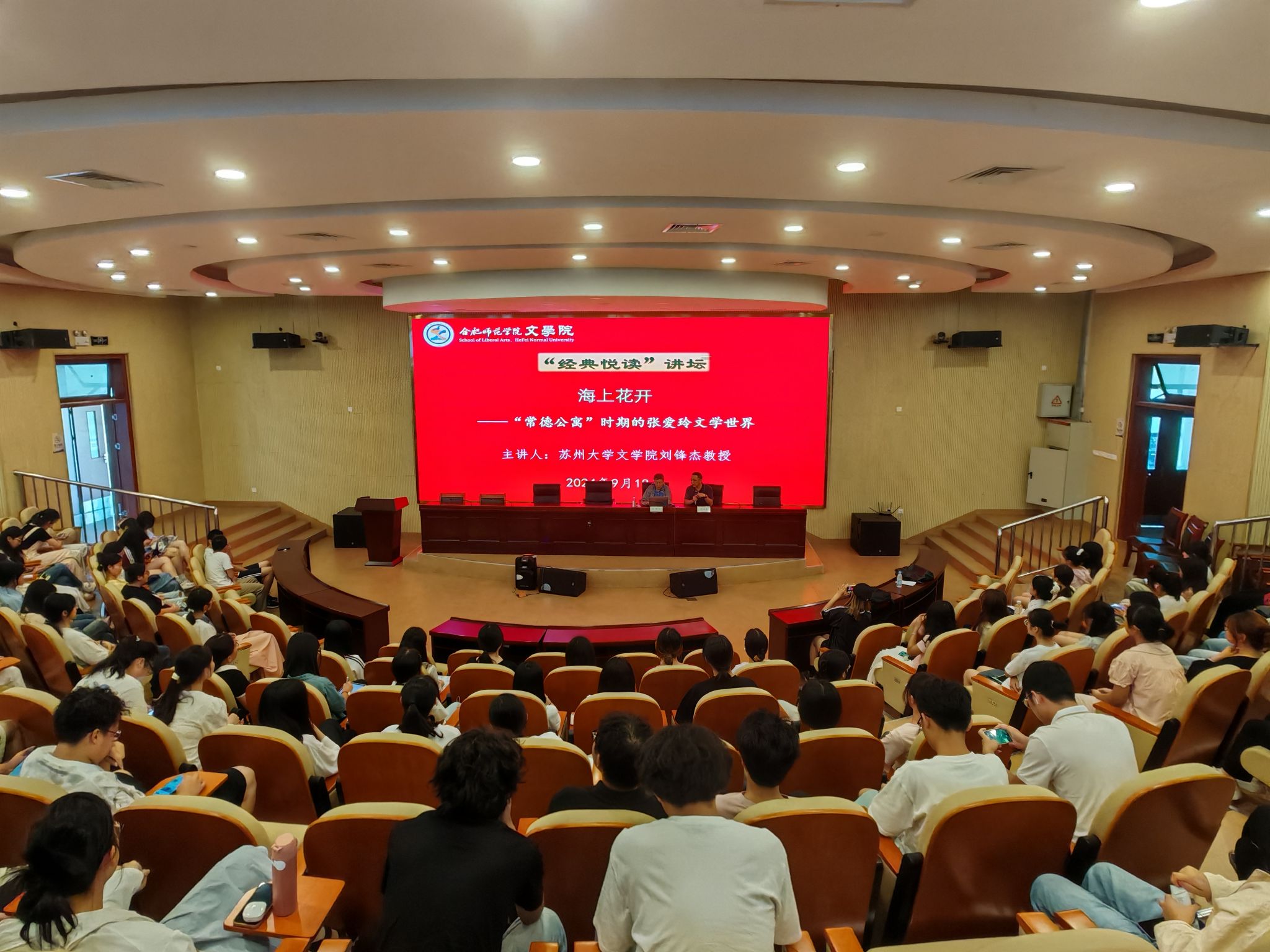 为浓厚学院学术氛围,倡导阅读启迪心灵,引领学生走进文学经典世界,beat365唯一官方网站文学院筹划“经典悦读”讲坛系列学术报告,广邀名家学者为文学院学生开讲授课。9月18日下午,“经典悦读”讲坛首场报告在滨湖校区学术报告厅开讲,苏州大学刘锋杰教授应邀来校作题为《海上花开——“常德公寓”时期的张爱玲文学世界》学术报告。报告会由文学院院长何旺生主持。