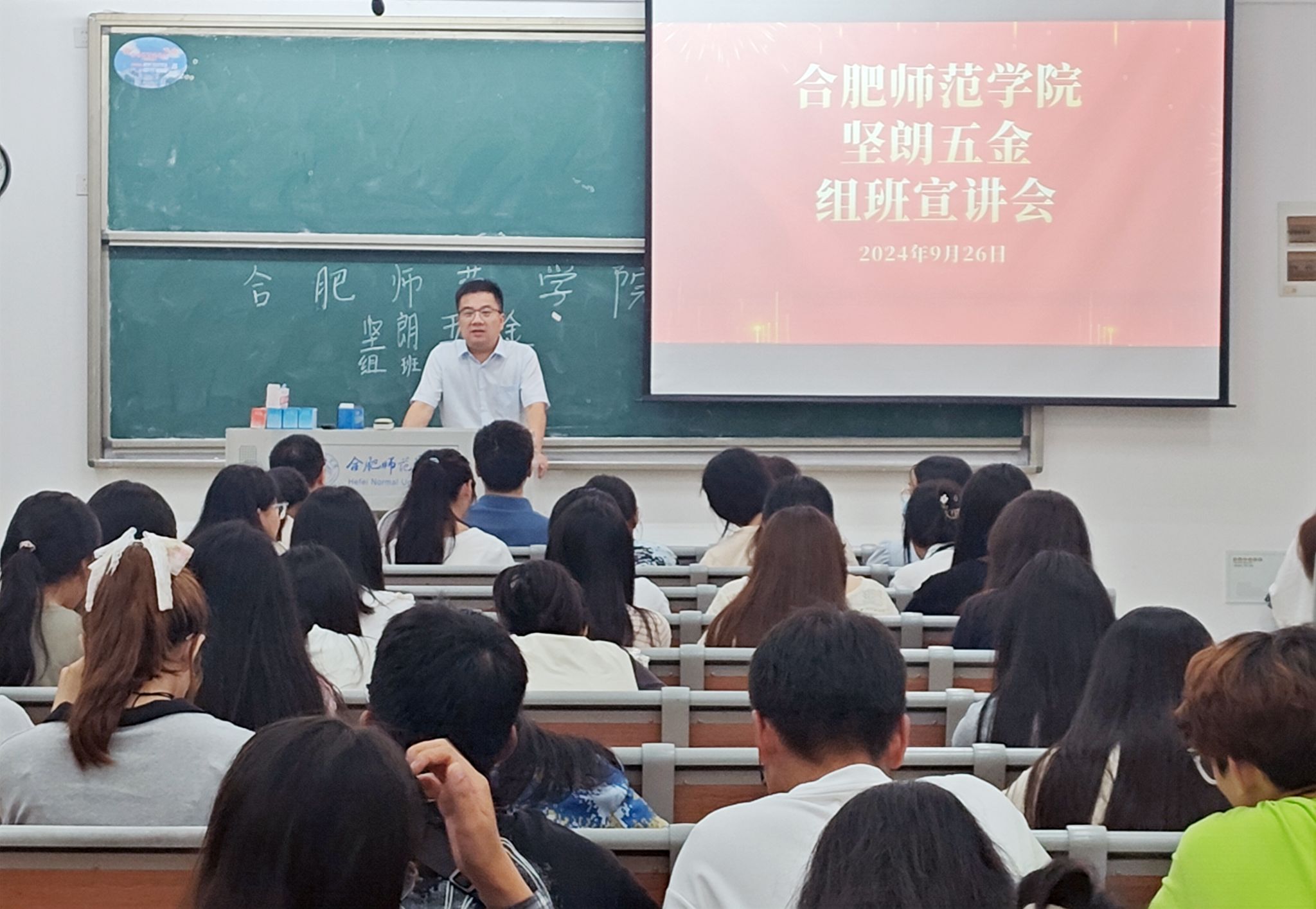 9月26日晚,经济与管理学院2023级市场营销“坚朗订单班”奖助学金颁发仪式暨2024级组班宣讲会在滨湖校区举行。广东坚朗五金制品股份有限公司人力资源部部长戴成、人资专员李天杰,经济与管理学院党委书记陈好、副书记陶敏、副院长钟玉文,2023级全体“坚朗订单班”学生以及2024级市场营销专业的学生参加了颁奖仪式与组班宣讲。会议由经济与管理学院辅导员高劲成主持。