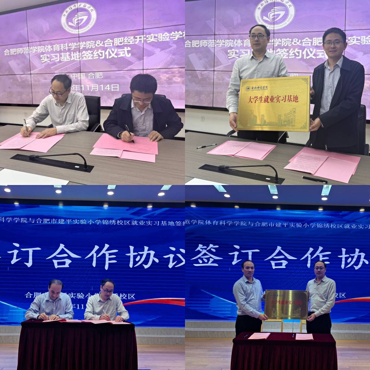 为切实落实就业优先战略,促进大学生高质量充分就业,加强校地合作,推动人才培养,实现合作共赢,11月14日下午,体育科学学院党委书记赵波、副书记王飞,体育教育系主任曹垚、副主任陆保云,张猛、毕业班辅导员陈山山等一行赴合肥经开实验学校、合肥市建平实验小学(锦绣校区)推进学生就业实习基地建设。