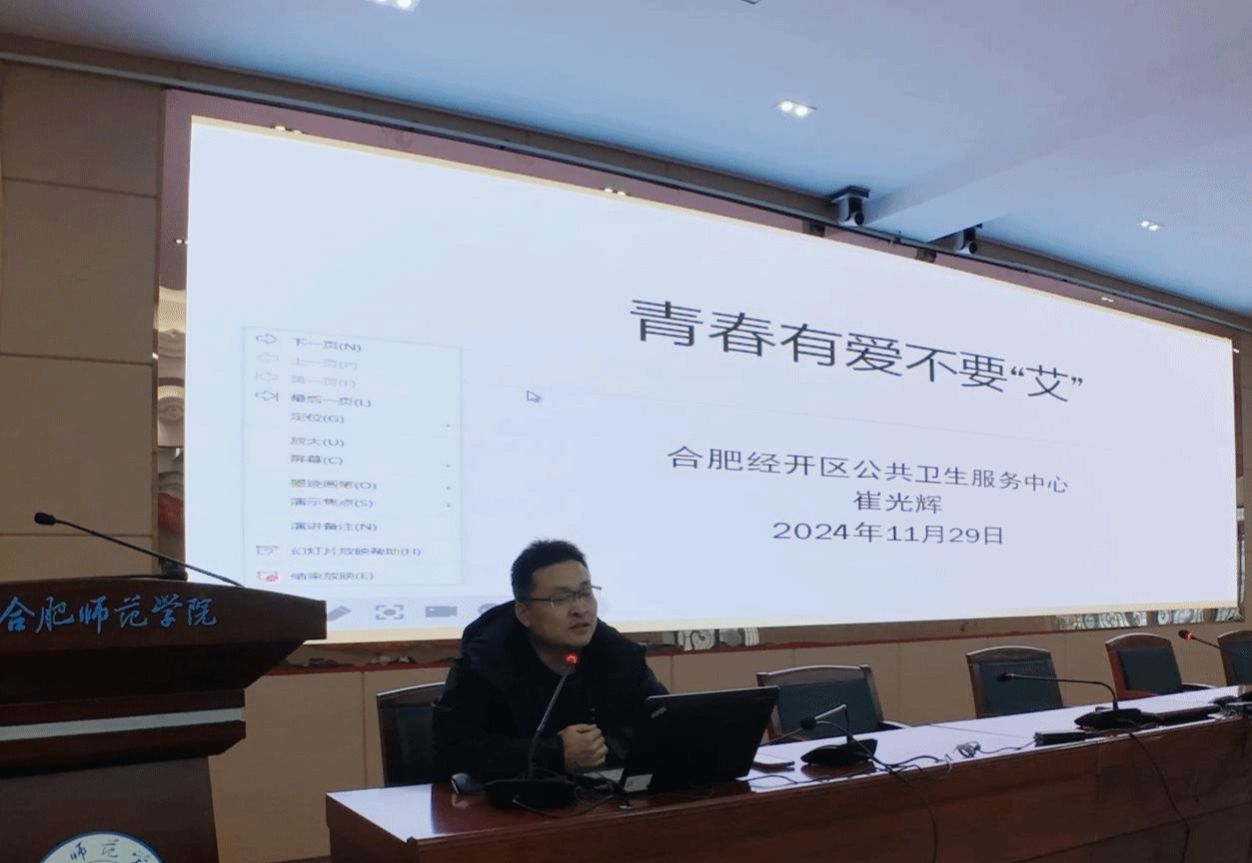 11月28至29日,后勤处校医院邀请合肥市经开区疾控处副处长、副主任医师崔光辉来校开展艾滋病主题讲座。该讲座是我校今年艾滋病日主题宣传系列活动之一。