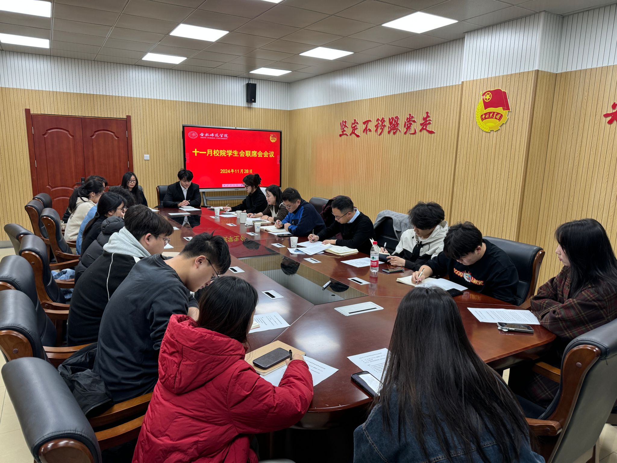 会上,与会人员共同学习了习近平总书记考察安徽重要讲话精神。会议通报了院学生会近期工作总结及安排,听取了各二级学院学生会11月工作总结和12月工作计划。