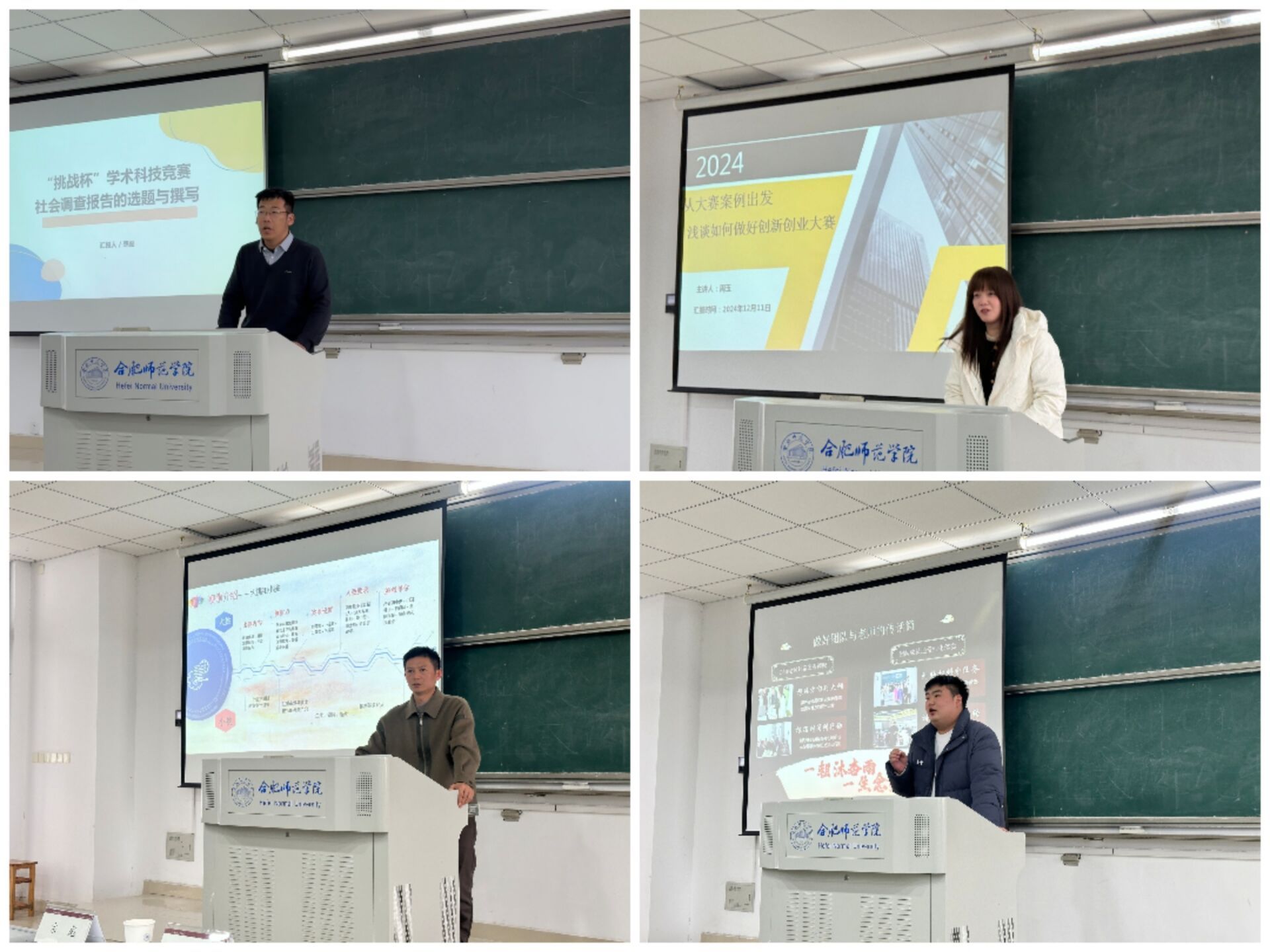 为认真学习贯彻习近平总书记考察安徽重要讲话精神,动员引导青年学生积极参与各类学科竞赛活动,助力应用型人才培养模式改革和质量提升,12月11日下午,院团委在滨湖校区举办第二期“挑战正青春”大学生学术科技竞赛沙龙,活动邀请近年来指导和参与“挑战杯”等学术科技竞赛并取得优异成绩的师生代表参加, 分享创新创业故事和赛事参赛经历。院团委兼职副书记吴杰主持活动,院团委副书记何磊及来自滨湖校区各学院的200余名同学参加活动。