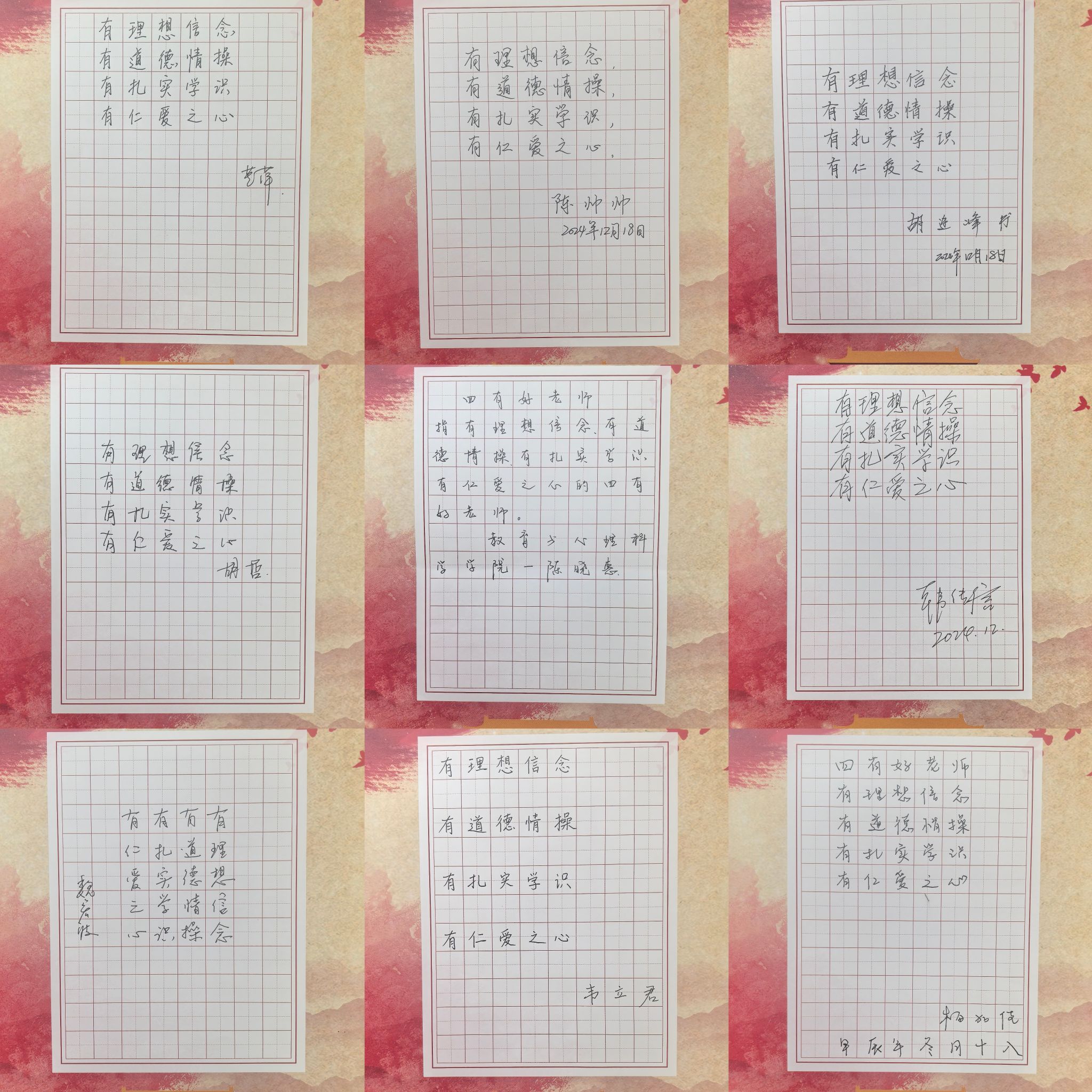 活动伊始,唐银带领全体教职工进行了手指操热身活动,通过手指的灵活运动,消除疲劳、放松心情、活跃气氛。在随后的书写环节中,全体教职工平心静气,提笔有神,以软硬笔书写出一幅幅有着独特韵味的书法作品。